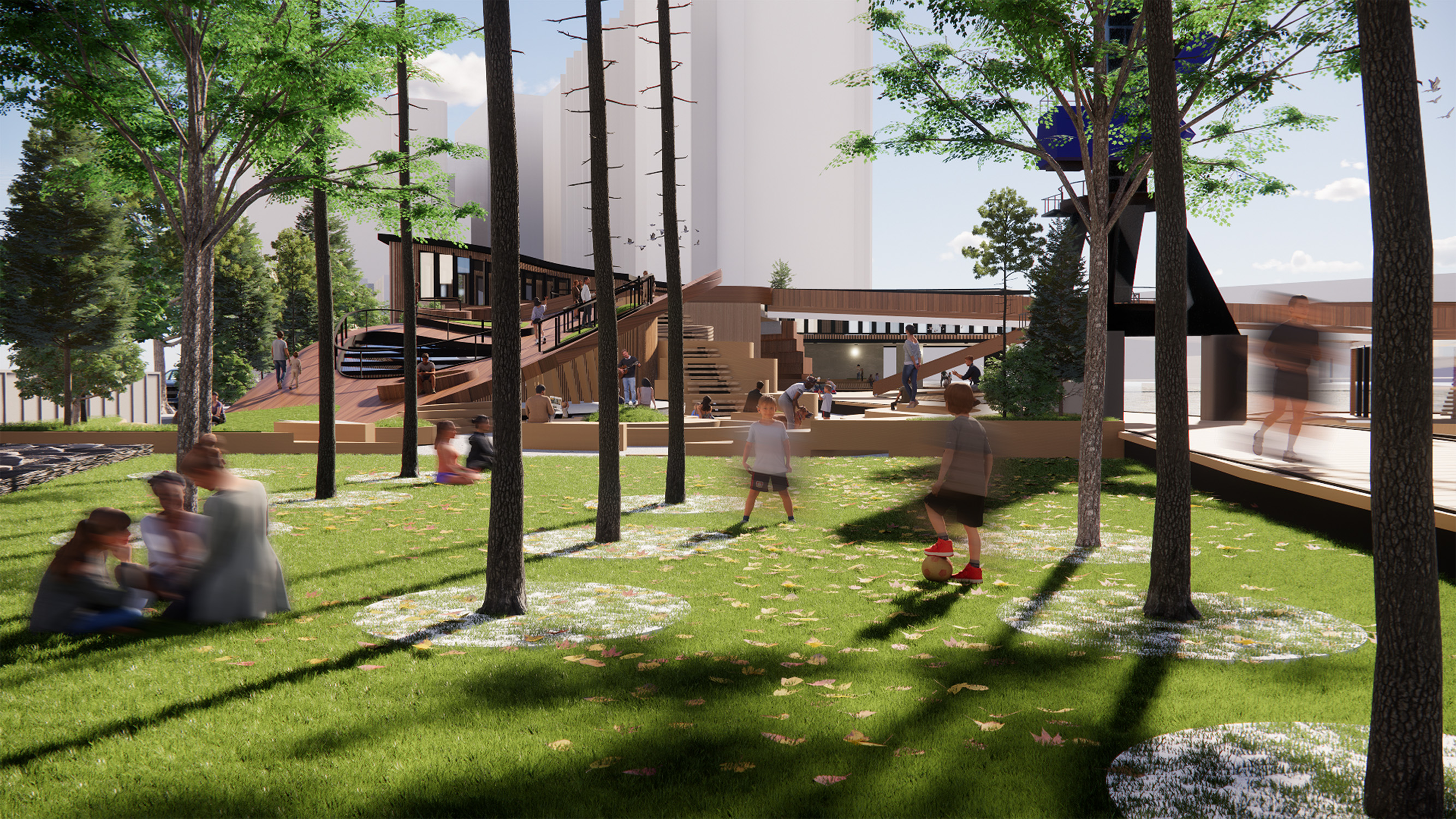 Riverside Aquatics is a Leisure Centre/Ferry Terminal located alongside the Yarra River in Melbourne. The aim of this project was to allow for a outdoor pool activity whilst viewing incoming boats from the river. The project entertains people of all ages with high activity pools, peaceful garden spaces, viewing seats on the docks, rooftop gardens, kids play area and many more unique spaces.