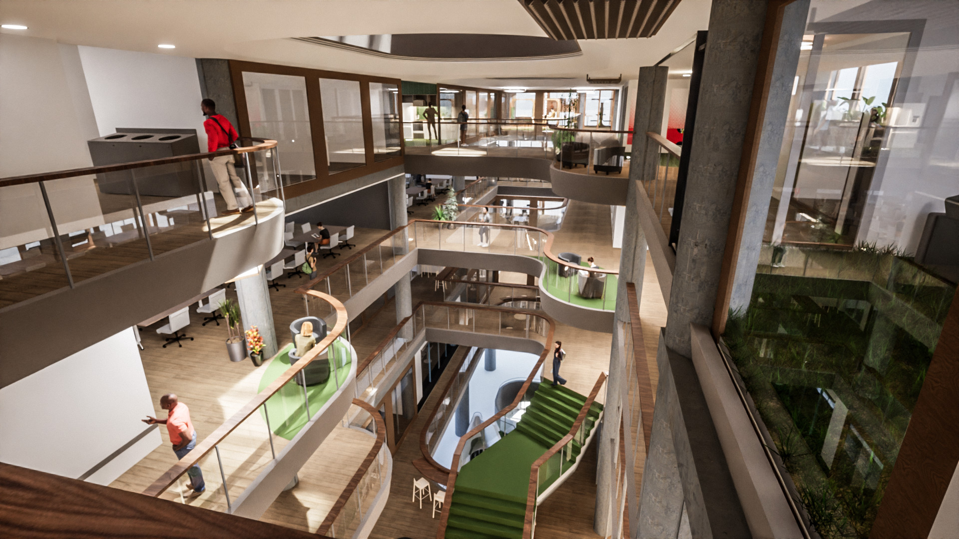 This is in the interior of a reworked AMDC that celebrates the void space and connects all the levels even further creating an integrated workspace. More on my website