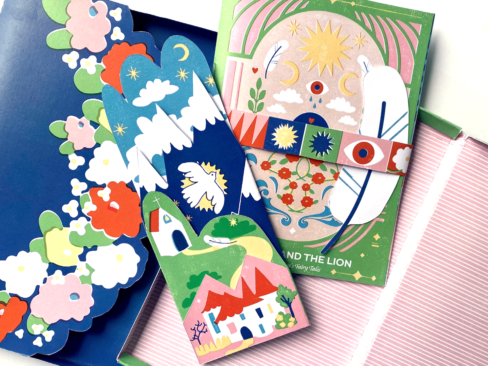 For this project, I reimagined ‘Lily and the Lion’, creating a mini publication with a custom enclosure and thematic paper ephemera. My design includes a floral sleeve, inner enclosure, standing folded theatre, belly band, and paper feather, all crafted to enhance the story’s aesthetic. Detailed production diagrams and specifications were provided for each element.