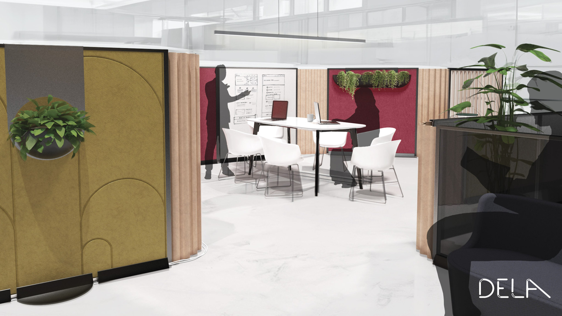 In my final year at Swinburne I set out with an ambitious goal. This goal was to not only design a product to improve the hybrid working experience, but to rebuild connections and overall purpose for co-location/the office. My project, Dela, is about "bringing people closer together so that they can work effectively apart". Dela is a modular fit-out that’s fit for your team; providing an agile solution to the current scenario of rentable offices in which the teams who occupy this space continuously change; as such the co-located office itself should also be flexible/open to change.