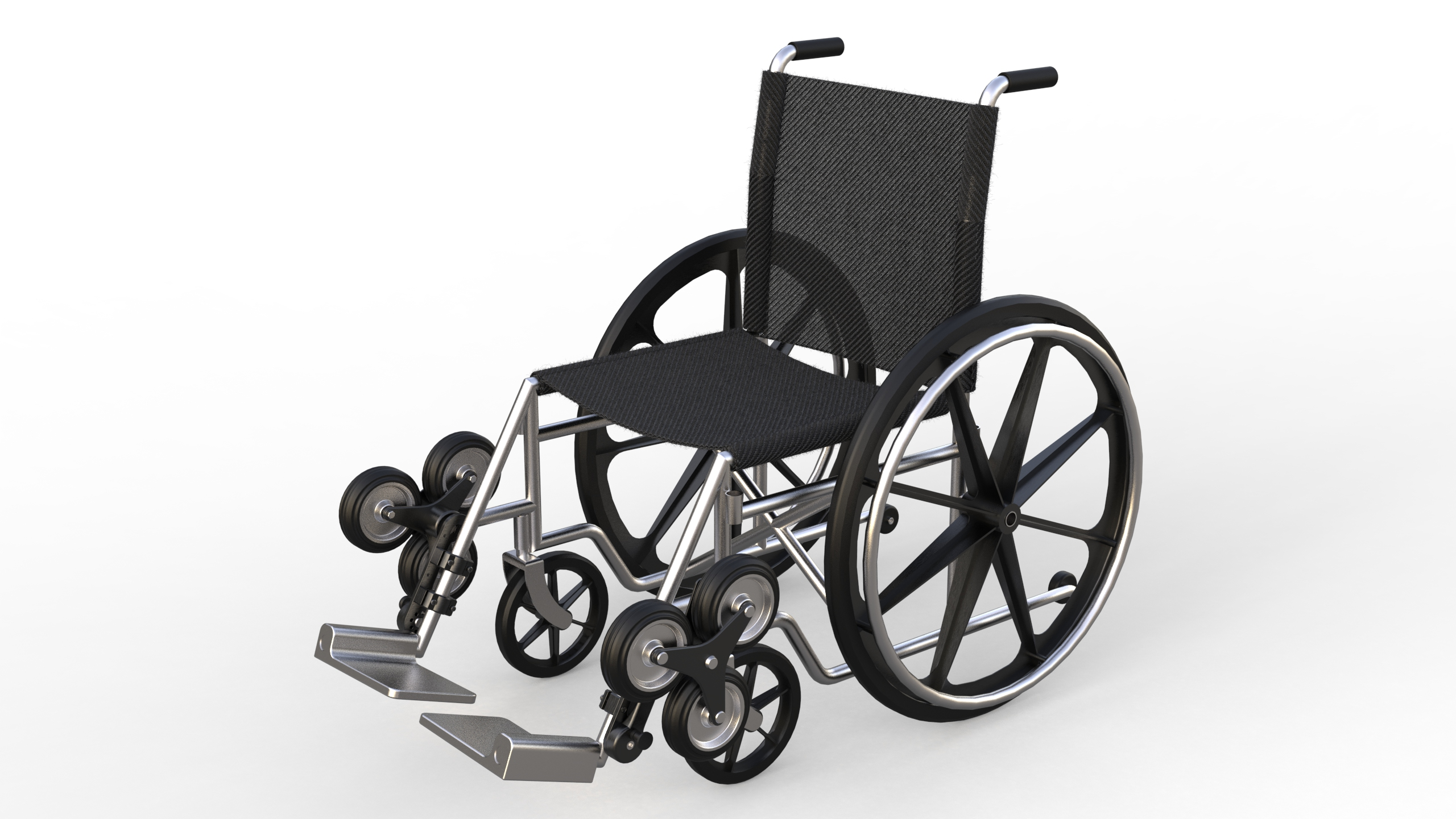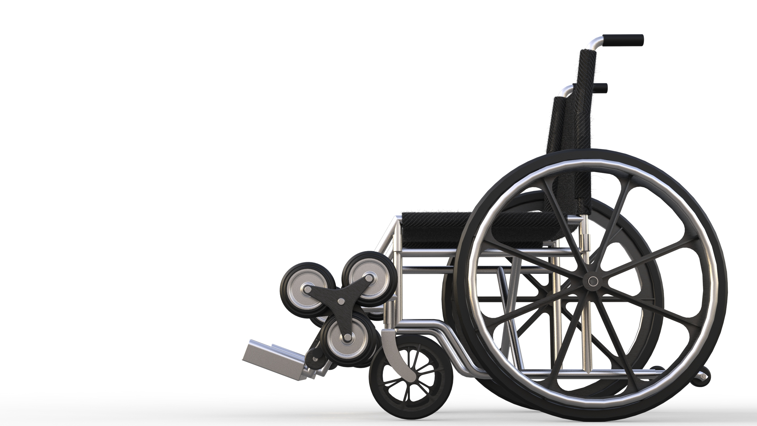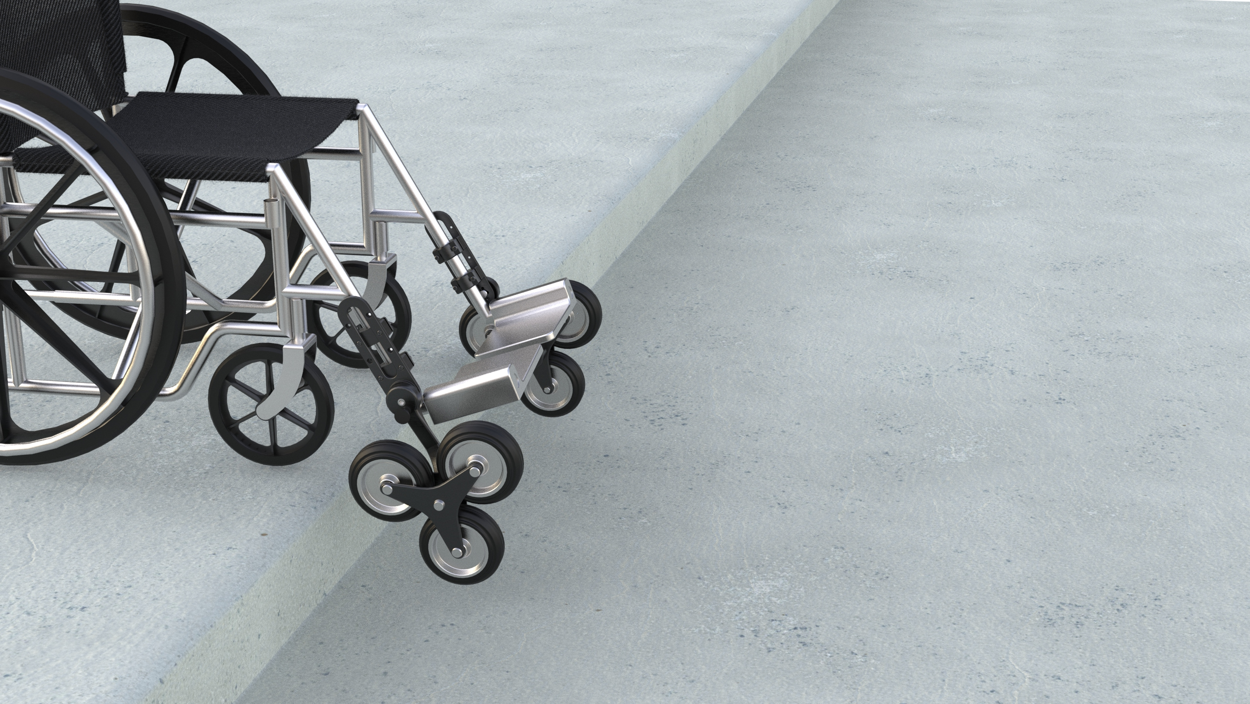 The device can also be used to lower a user gradually from a higher elevation to a lower level by extending the Tri-Wheels out to lower than the wheelchair once close to the edge.