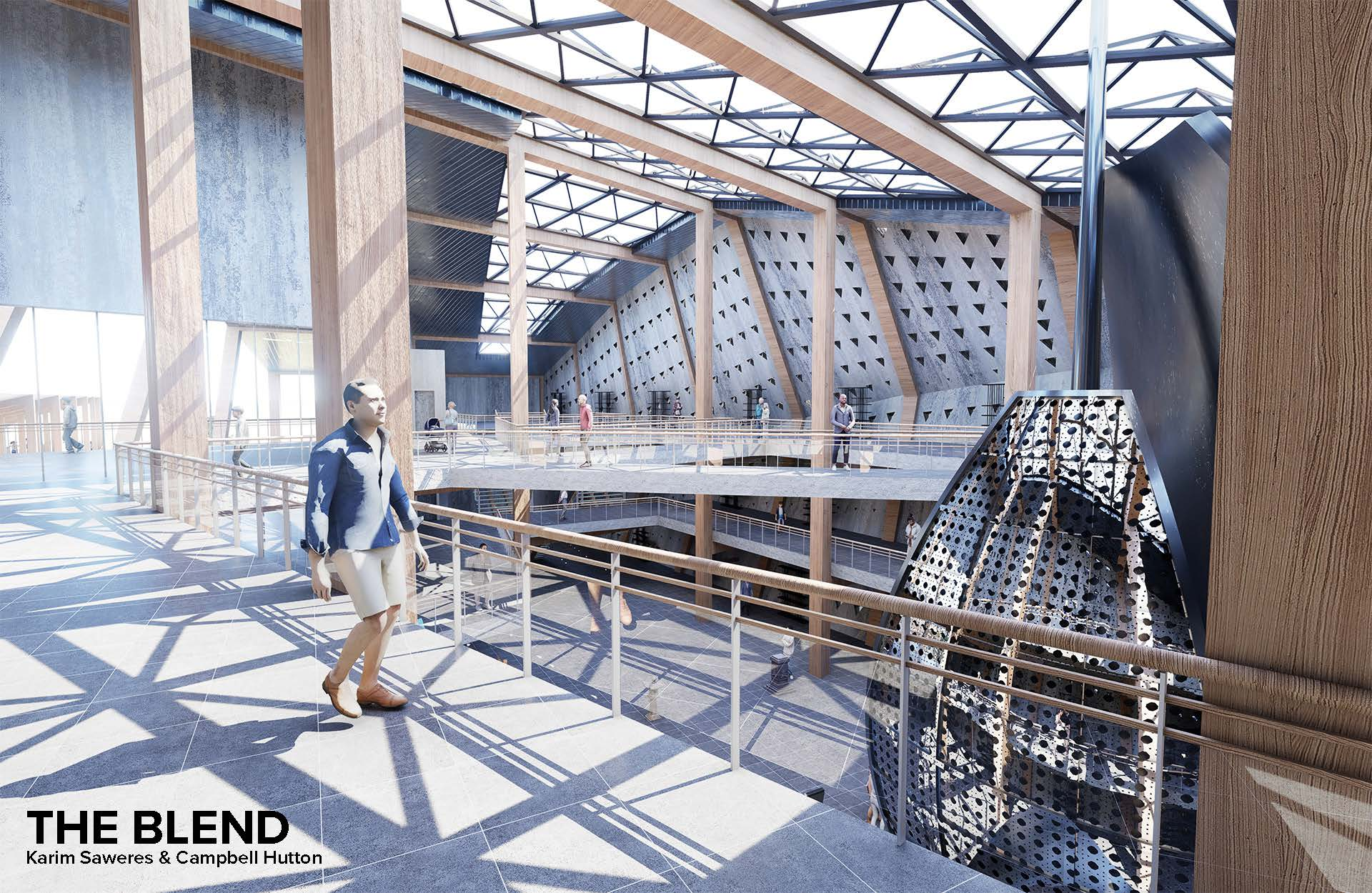 Studio 5 saw us design a museum in Newport, while incorporating an "X" which aims to serve the community of Newport. Working with Campbell, we designing a museum consisting of three separate masses, connected through the roof and a bridge. The largest museum (shown in render) exhibits the rich industrial heritage of Newport, accommodating large exhibit pieces to be vied from all angles through the use of voids within the three-story structure. Directly south of the industrial exhibit is the historical exhibit, where visitors have the opportunity to learn about the history of Newport, from the Yalukit-Willam people who inhabited the land pre-colonisation, to the blue-stone quarries which shaped the early industrial heritage, to the railways which further shaped Newports industrial history, all the way to current day Newport acting as a blend between blue-collar industry and the current arts and recreation scene. The final museum building contains the community exhibit, where locals can display their works. Through these three museum buildings, we aim to design a curated experience, where visitors walk through the large industrial museum, through to the historical exhibit, then to the community displays, creating an "interactive timeline" through the history of Newport. Our project also includes several other spaces, including a Makers Market, Community workshop, Industrial education facility, and student housing aiming to reinvigorate the historical heritage of Newport in the modern day. The Market aims to enhance the existing markets that take place at the adjacent substation, allowing the community to use the public workshop to sell at the markets or display in the community exhibit, further bolstering both the old makers traditions and new arts scene in Newport. While the industrial education centre provides formal training for students in fields that have largely left Newport, accommodating for the large influx of people projected to move to Newport and surrounding areas.
