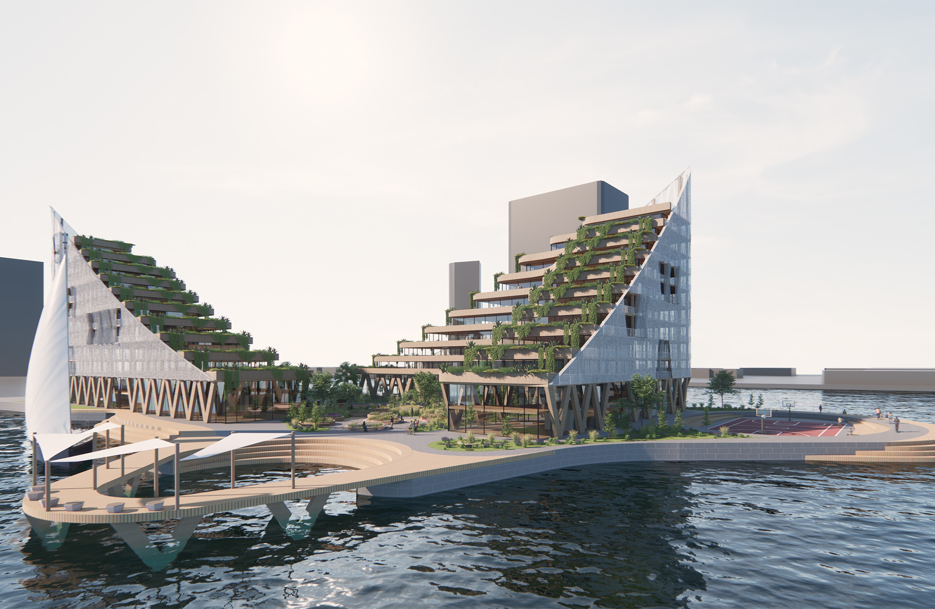 This project involved designing student accommodation in the South Wharf district of Docklands. Our goal was to create a mixed-use building combining residential and commercial spaces along the waterfront. We connected the building to the water through a central courtyard, complemented by bridges spanning over the Yarra River.