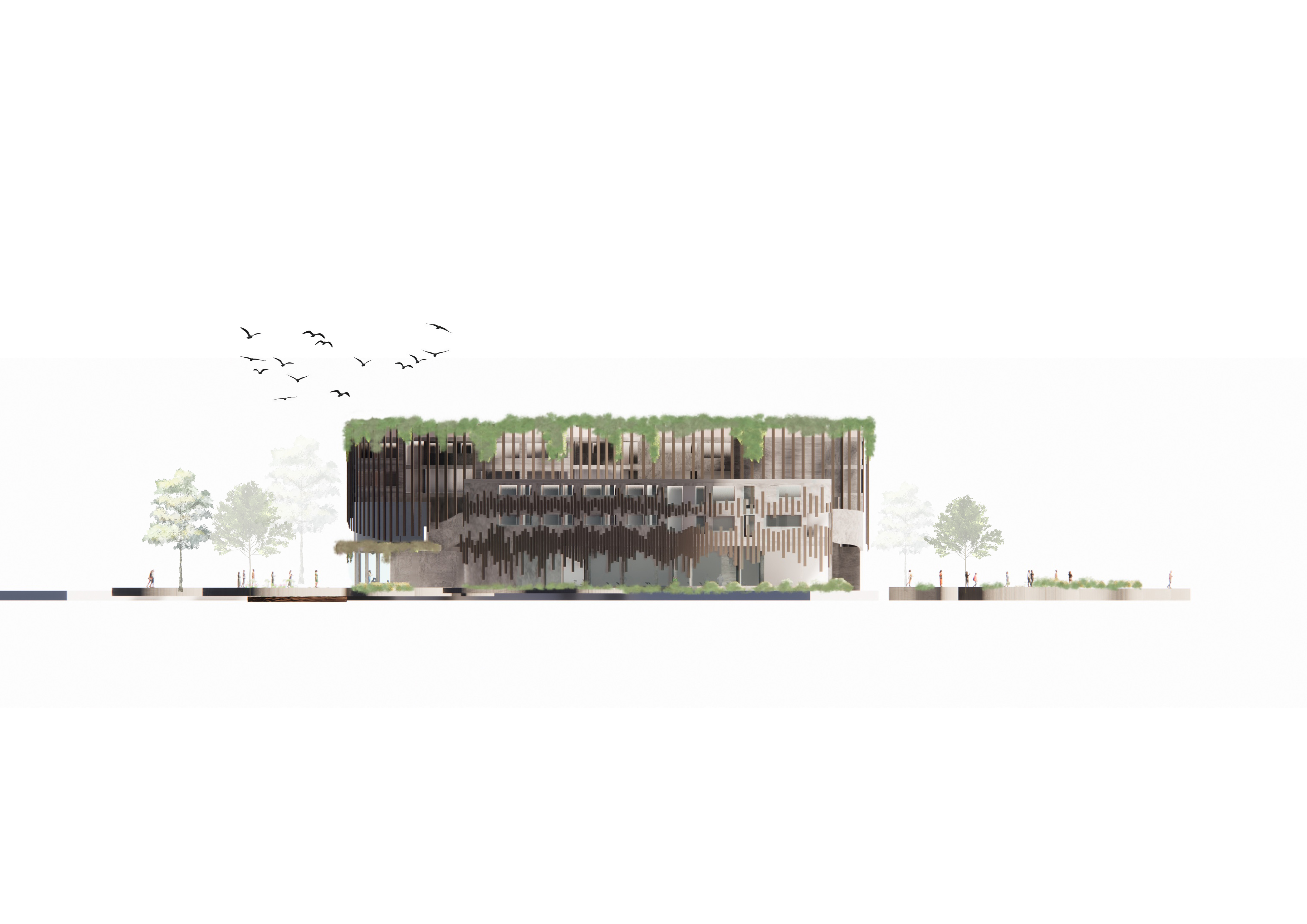 Despite being within close proximity to the lively city, the North Wharf is disconnected from the hustle and bustle energy of the Melbourne CBD. It is lacking a sense of vibrance; being held back by its infrastructure. To address this, the proposal offers a retreat embracing the disconnect between the site and its surroundings, offering access to a more peaceful area, activating the space in a unique and purposeful manner.