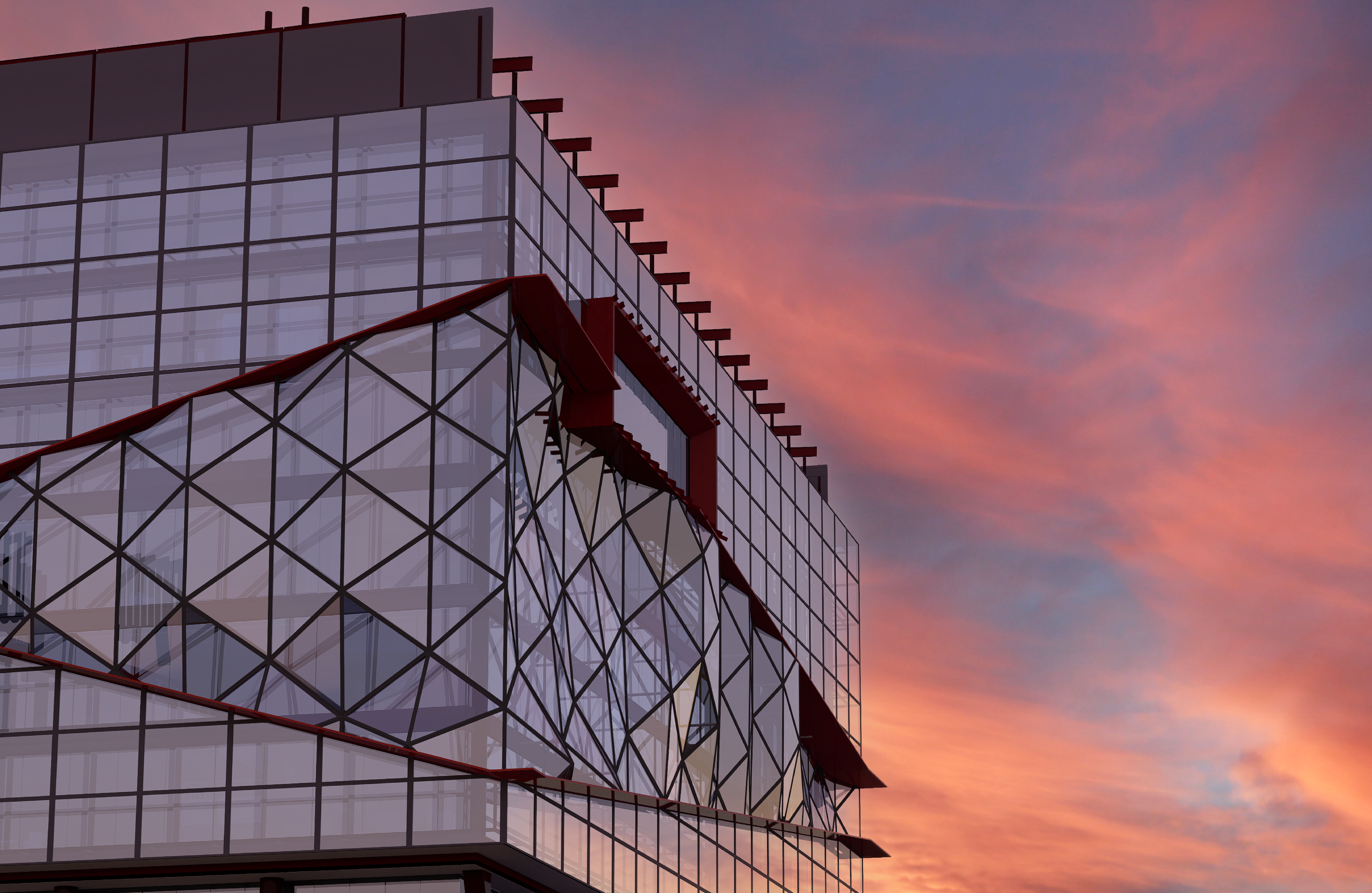 Re-imagining the existing AMDC building as a collective hub for students, lecturers and visitors with the glass facade opening up to numerous views.