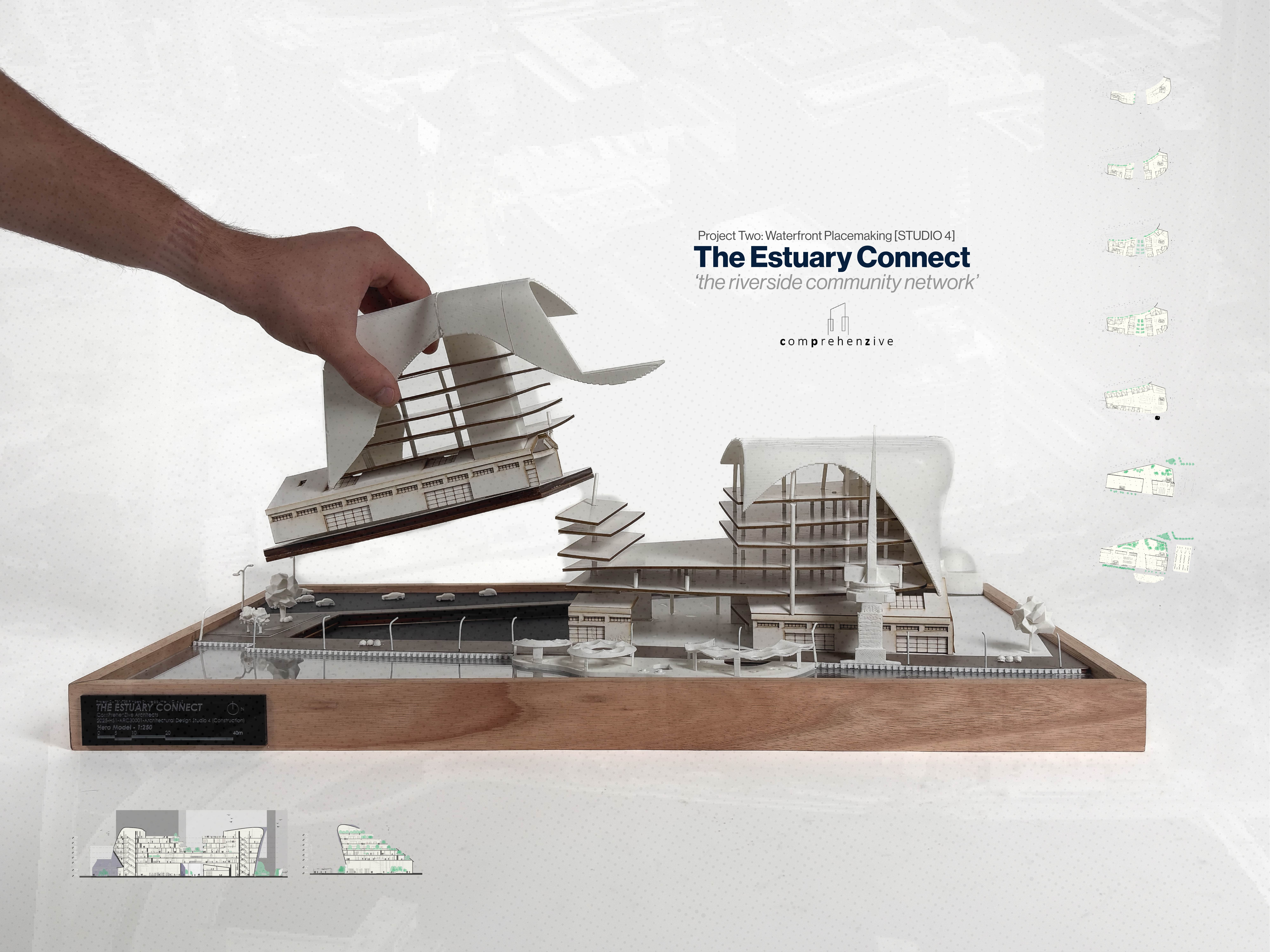 My favorite project, The Estuary Connect. A waterfront project 'the riverside community network' was a residential-mixed use building that featured a dynamic and responsive facade and a shared living network while responding to its Birrarung adjacency in form and functions.