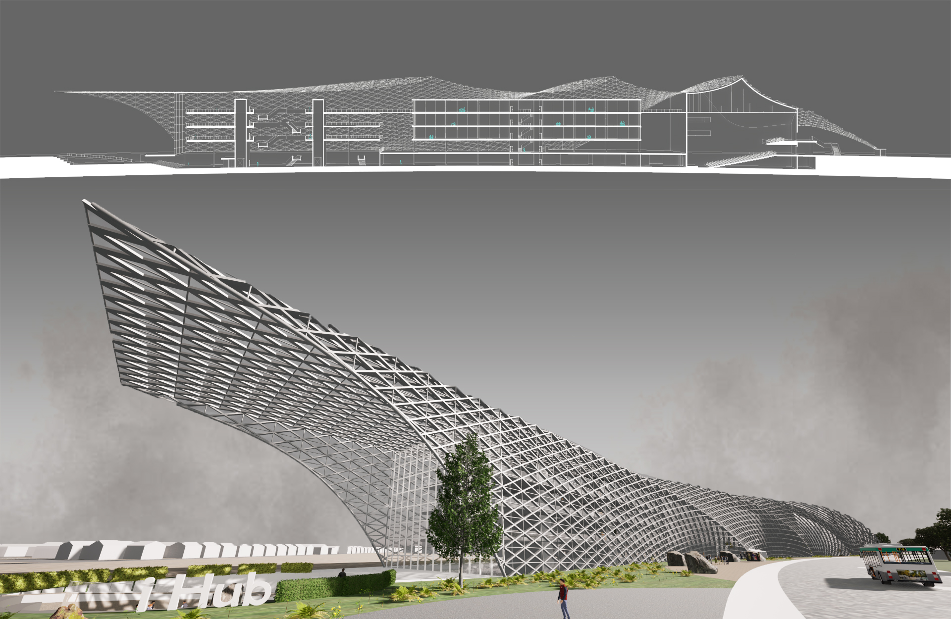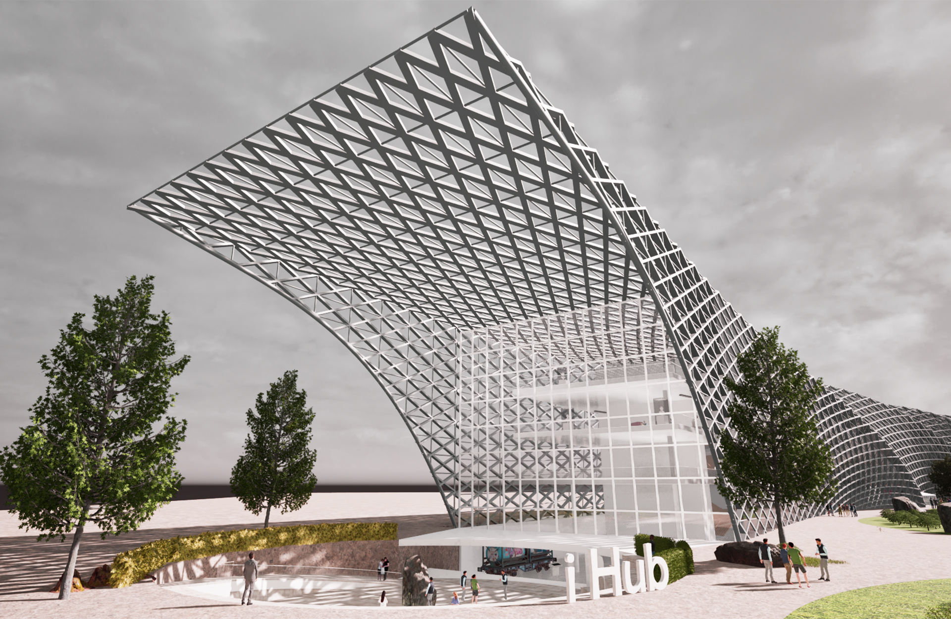 For my final semester project, I–hub, a high-tech industrial park themed around technology and education, the vision was to harness innovation to attract investment and stimulate local industrial renewal, ultimately contributing to regional economic growth. I chose DNA as the central design concept, representing growth, connection, and the continuity of knowledge. The building’s form and circulation were inspired by the spiral structure of DNA, allowing visitors to experience the idea that learning is a journey of exploration and evolution.