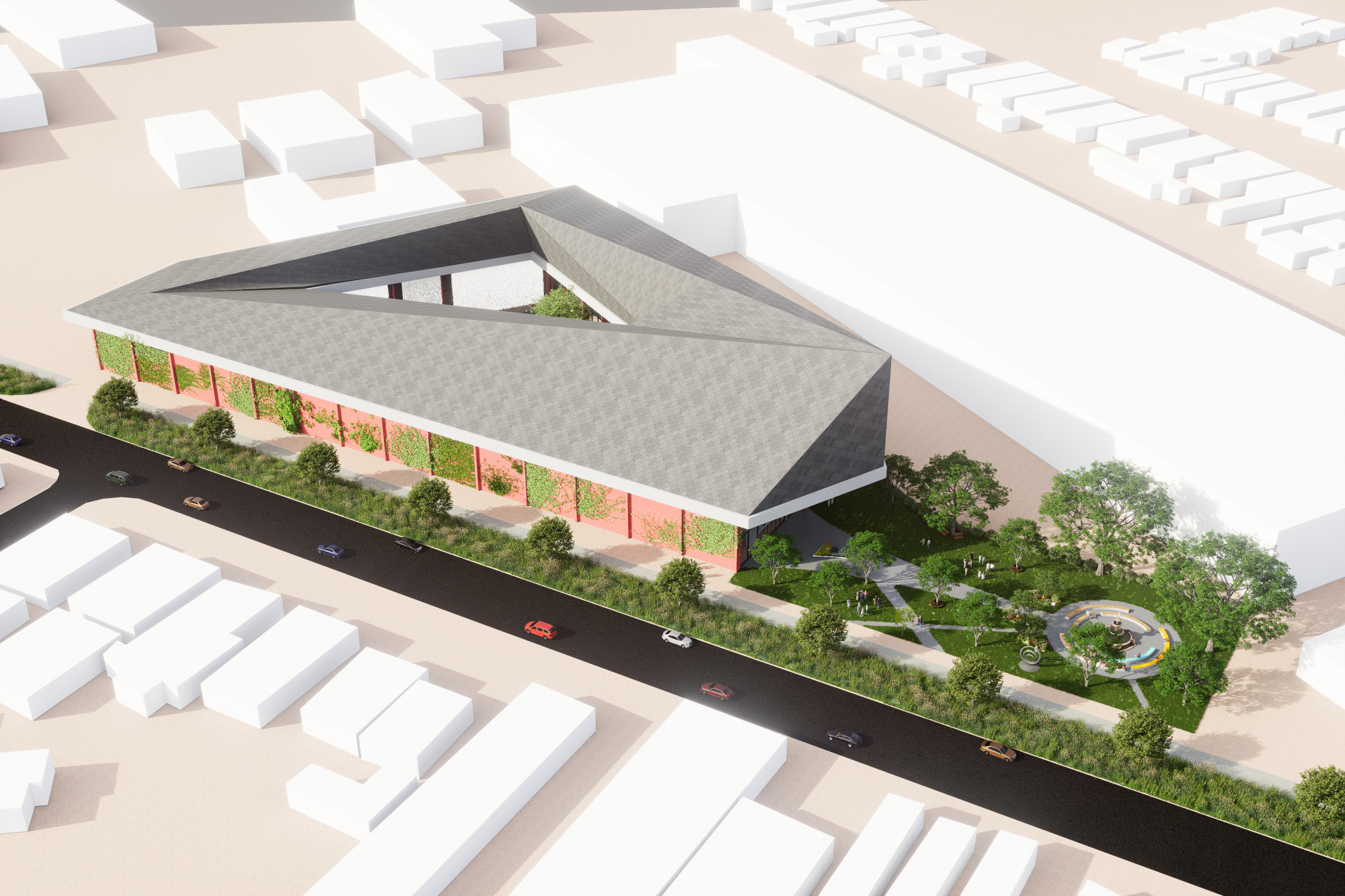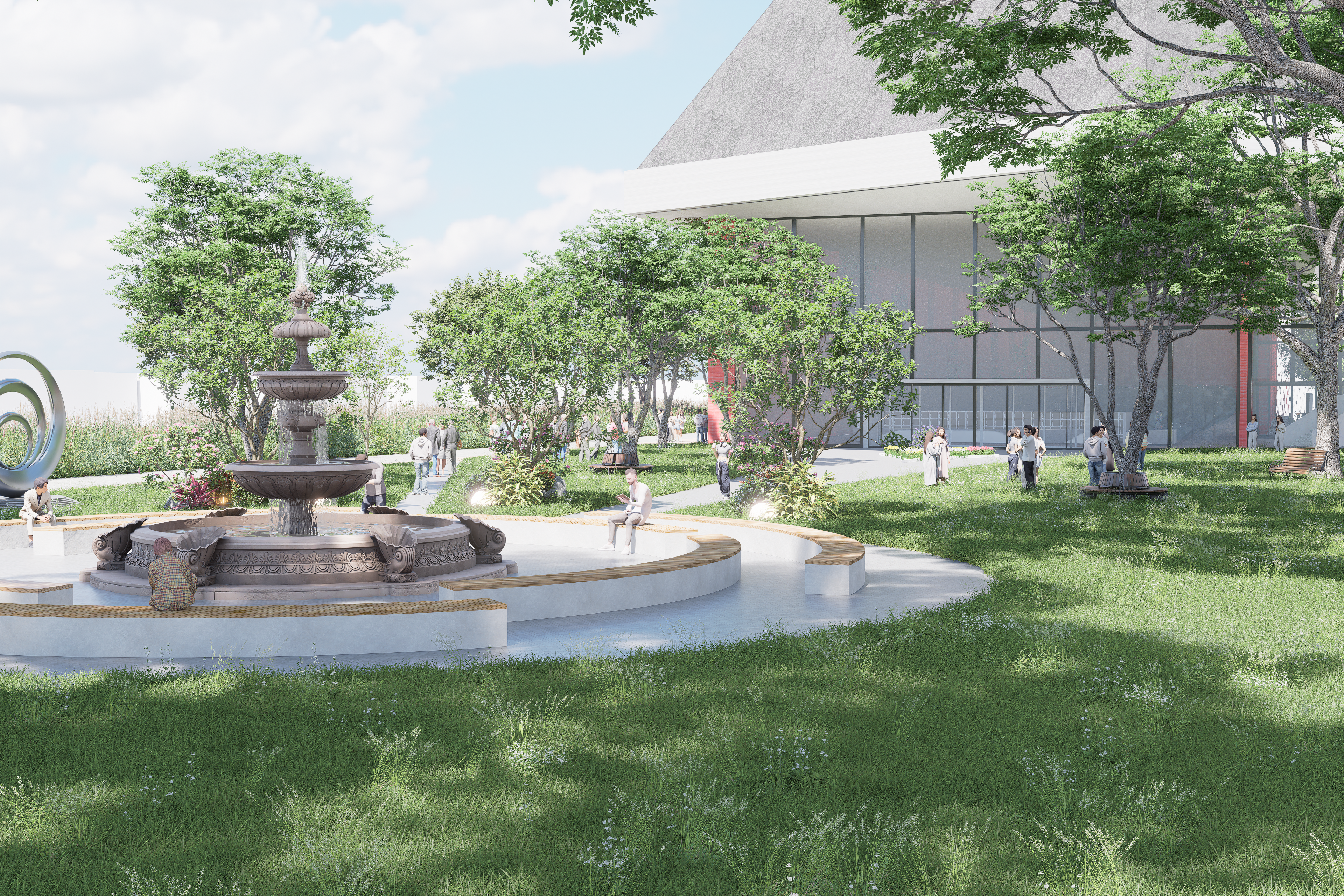 Cantral park shot of the proposed Lush Museum. A heart of Lush Museum has a beautiful garden in the middle of a building with water feature, which was inspired by Yalukit mean "river home".