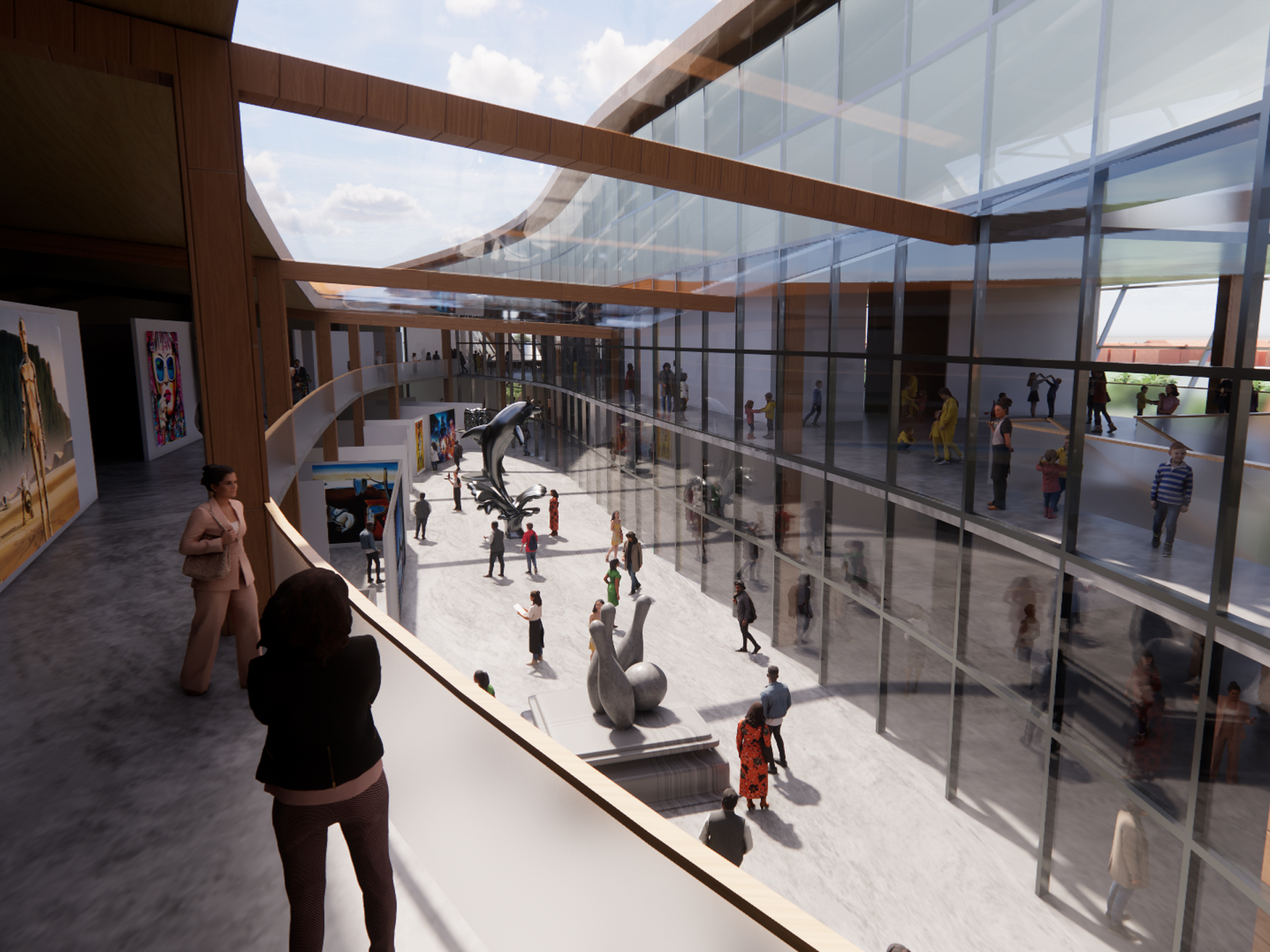 The Intersection is a contemporary art museum that creates a sense of community, recreation can meet the arts, and history evolves in the heart of Newport. Acting as a catalyst for Newport’s growth, the project recognises its heritage while evolving from it to create unity through the connection of adjoining precincts and activation of underutilised spaces. The mixed-use building forms a small village environment with study and workspaces, exhibitions of sculptural and painting works, and a history museum of Newport. Complemented by outdoor areas, event spaces, and food and beverage offerings, The Intersection fosters engagement for both residents and visitors. Ultimately, it aims to achieve unity for Newport with focus centralised by the suburb’s desire to grow.