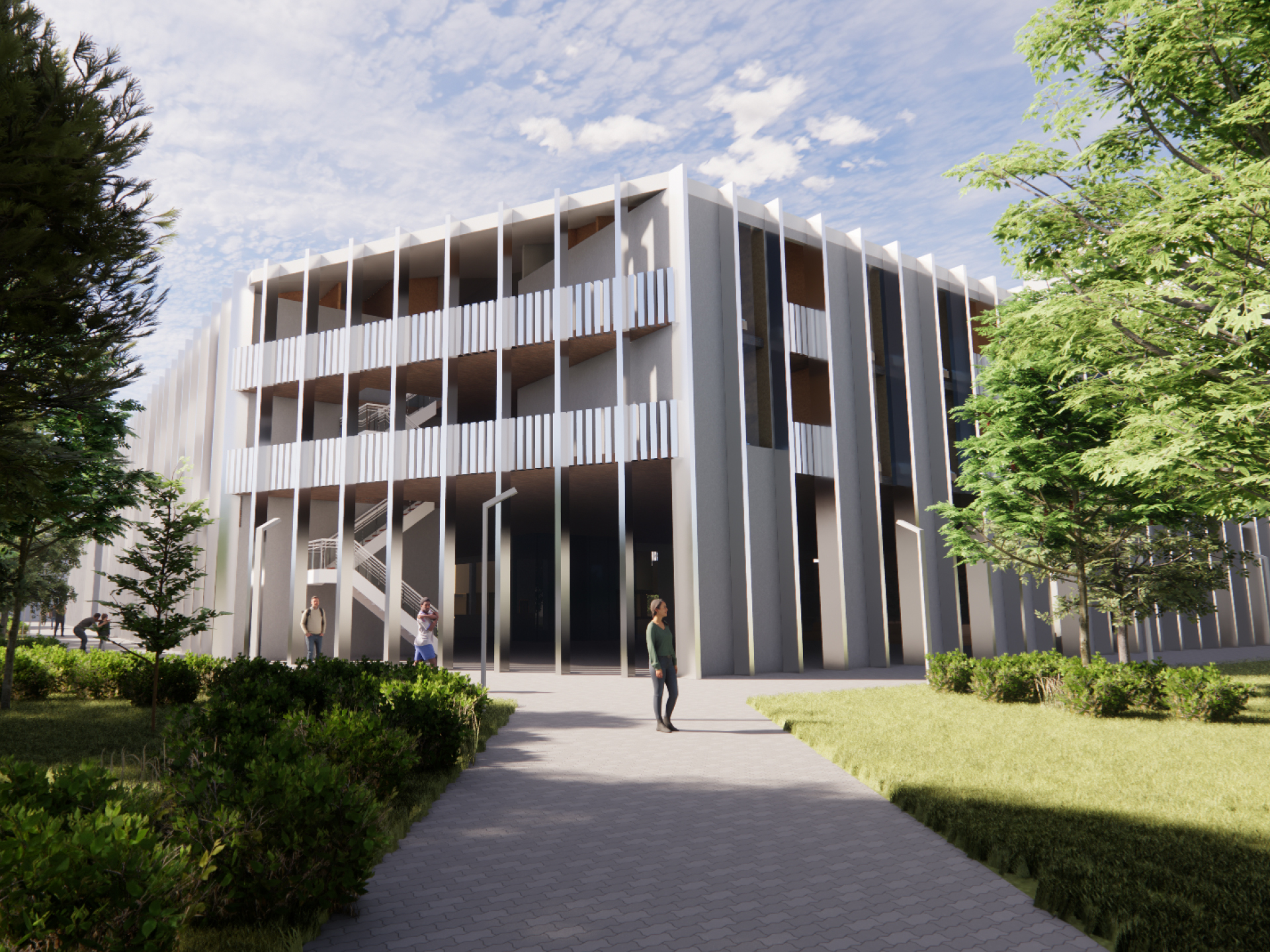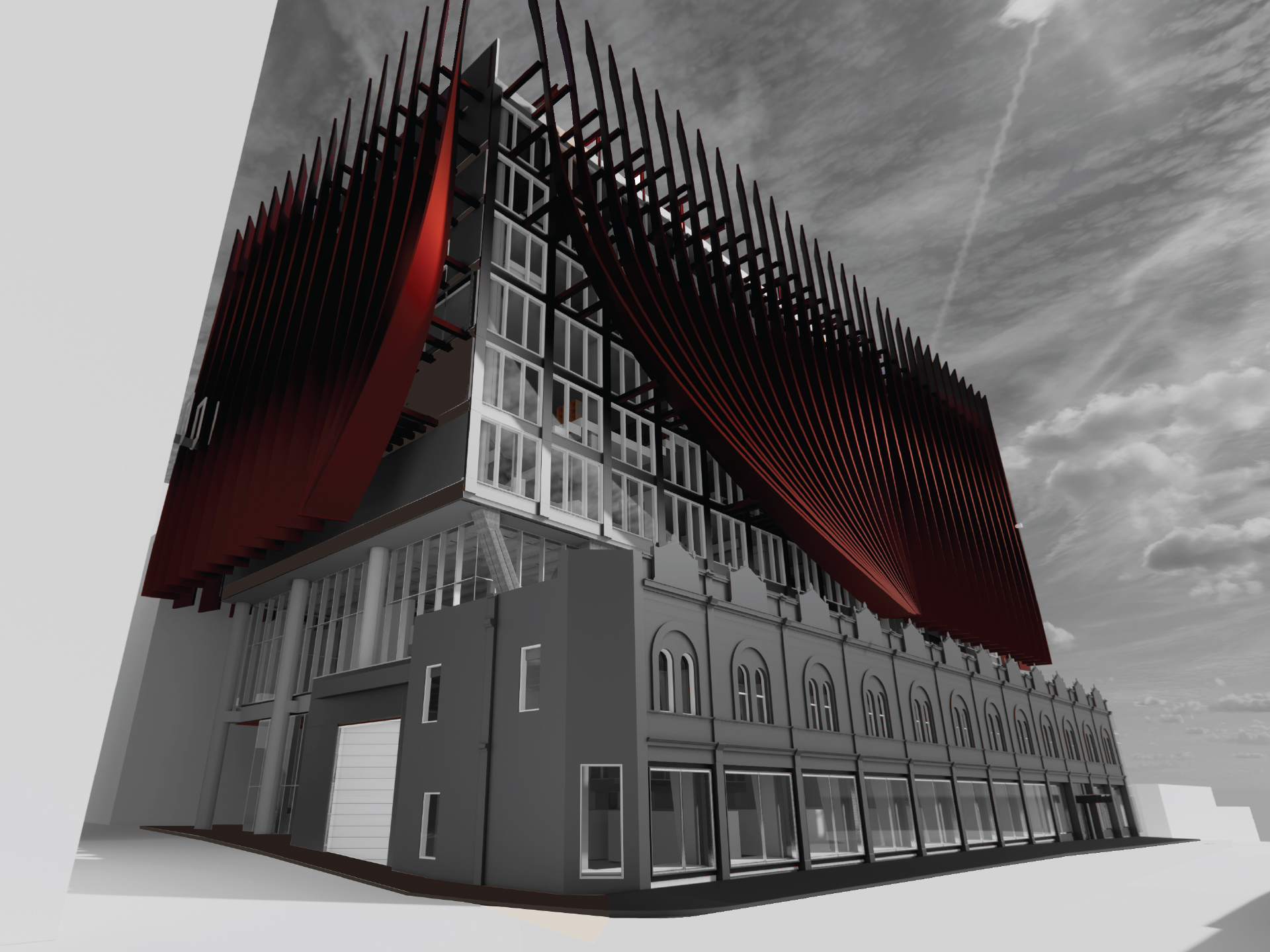 This project involved retrofitting Swinburne University’s AMDC Building in Hawthorn, requiring the design of three new floors and a proposed façade that met the needs of the building. The class required an extensive BIM workflow utilised to complete the project, integrating multiple software programs for conceptual development, site and façade analysis, and documentation. The design vision focused on two main goals: connecting people to place through environments that encourage social gathering and creating a heart for the building via a three-storey multi-purpose amphitheatre. The outcome addressed student needs by introducing diverse spaces for both social and private interaction, complemented by a GRC fin façade system that decreased solar gain and cross ventilation while breaking away from the traditional office aesthetic.