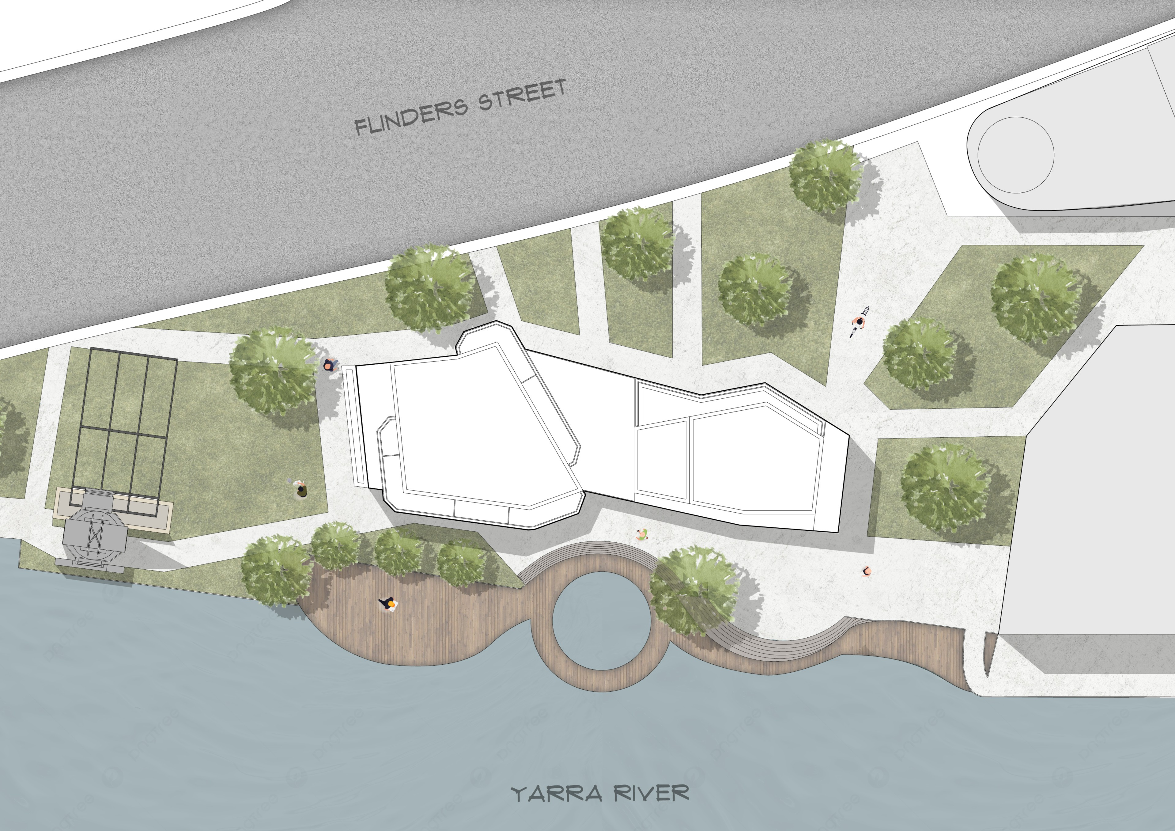 Blurring the boundary between land and water, this mixed-use project embraces the Aboriginal belief that no boundary is ever fixed but constantly shaped by nature's rhythms. The design integrates architecture with the surrounding landscape, allowing water, vegetation, and the built form to coexist in a continuous transition. Creating a space that celebrates connection and a fluid connection between people and place.