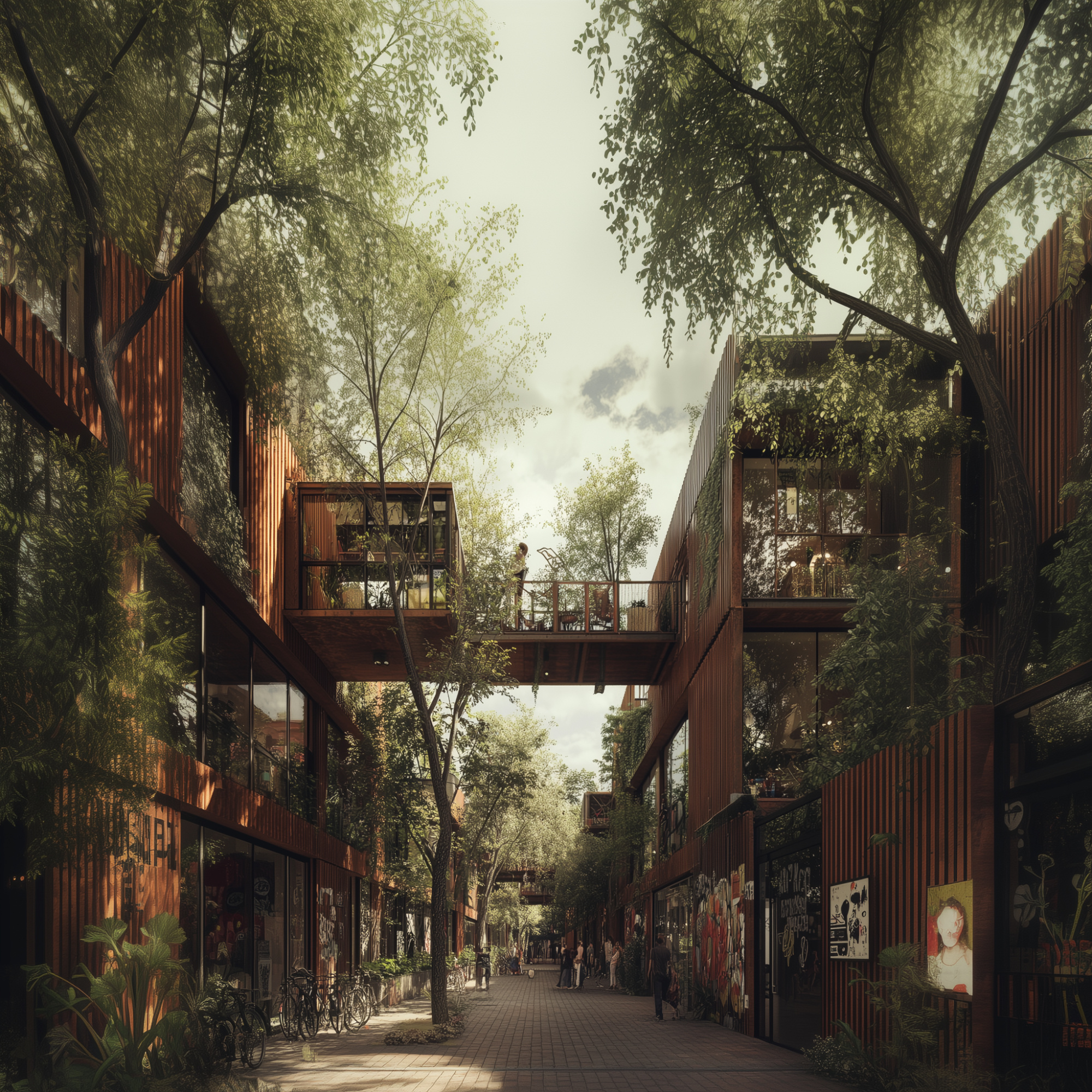 This architectural workshop explored the conceptual potential of 'Midjourney' as a design tool to envision new urban spaces within Melbourne CBD. Focusing on the rejuvenation of an existing derelict laneway, this project reimagines it as a vibrant residential community. Through the integration of digital exploration and architectural thinking, previously overlooked urban strands are brought into spaces of connection, liability, and renewal.