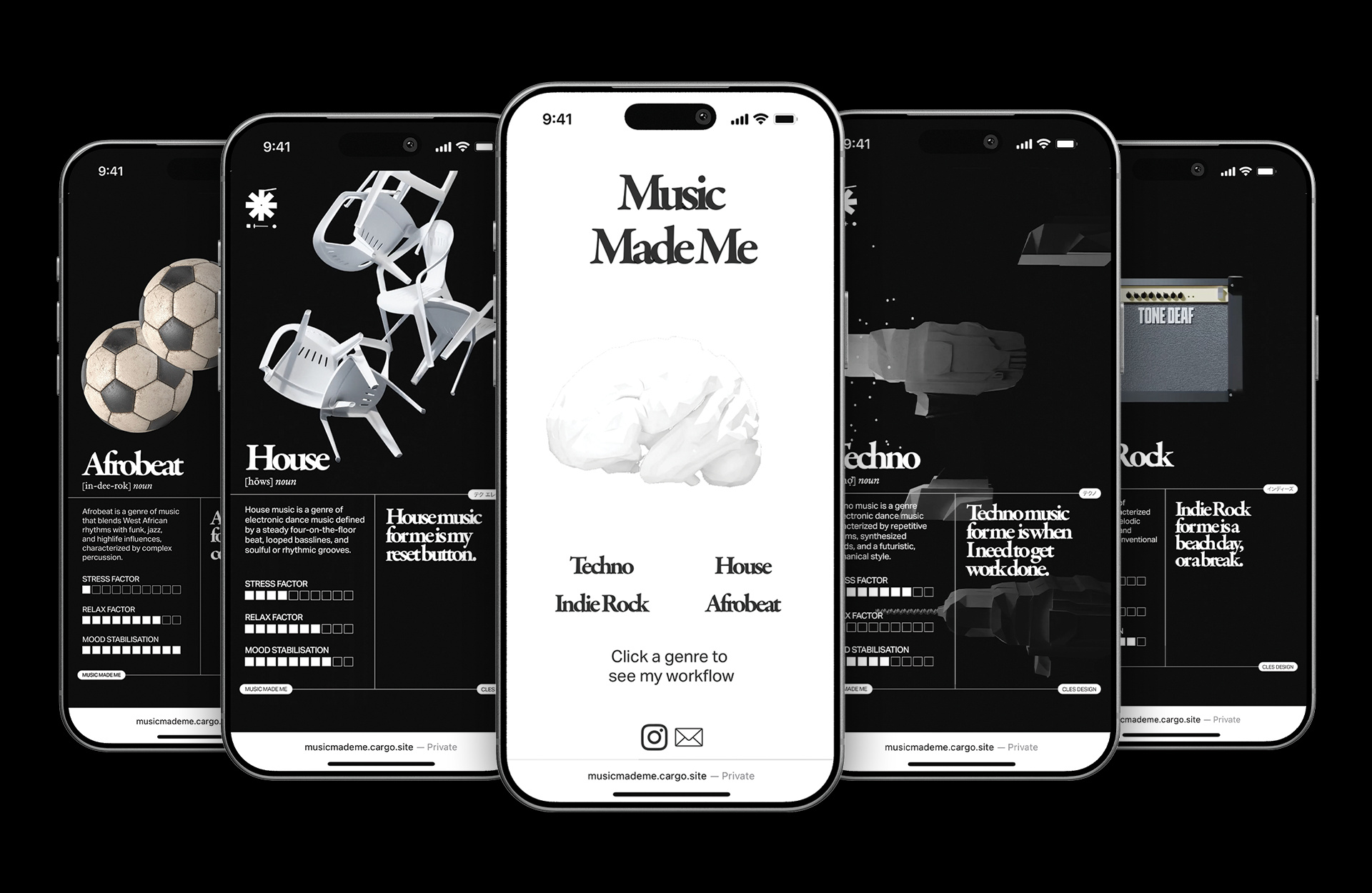 A question every design student naturally has to overcome to understand their creative purpose and intentions. For me, I view myself as a music nomad. This mobile-exclusive UI/UX experience was a project to express my love for music and its direct connection to my inner workflows and decisions.