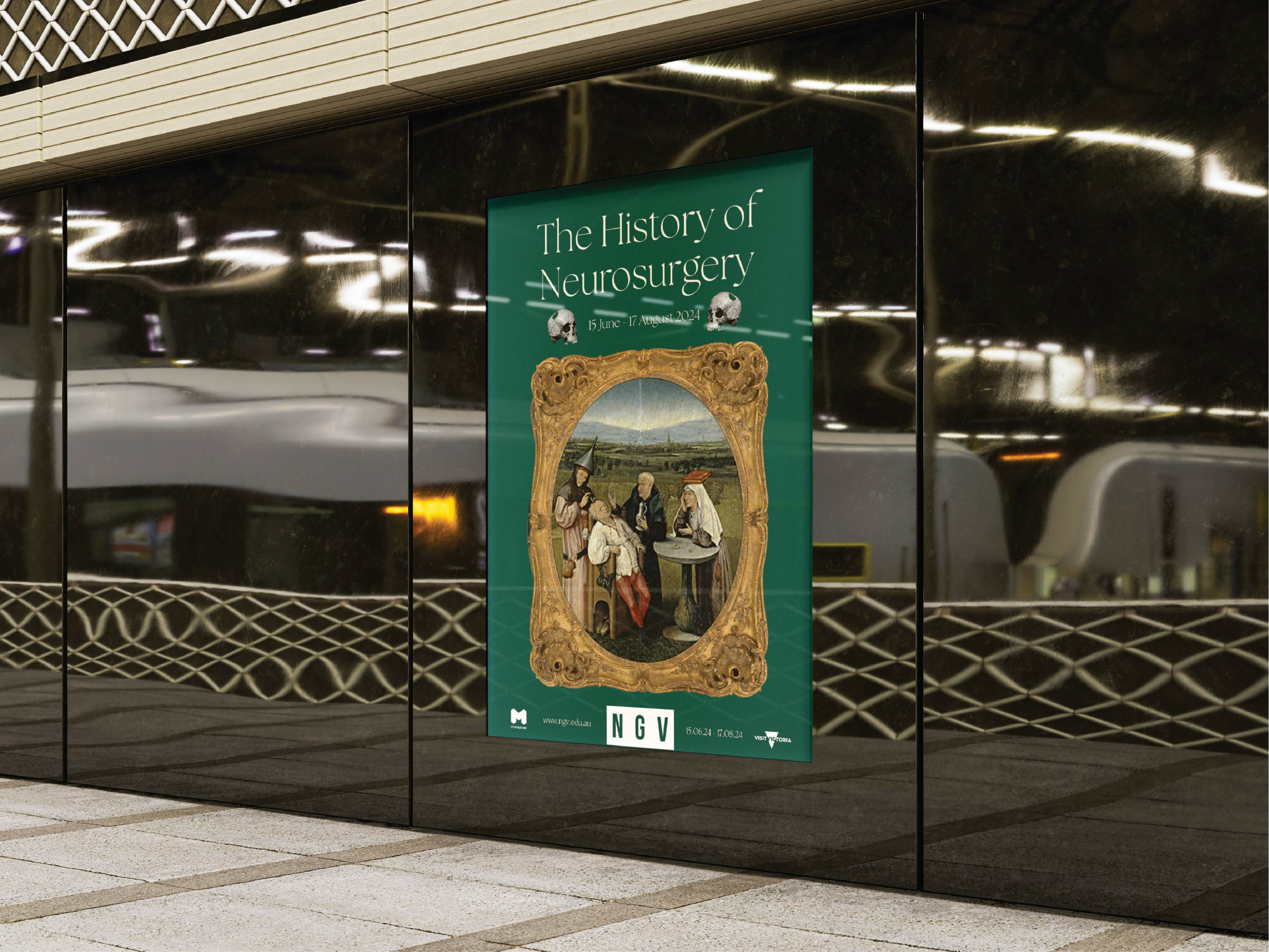 The History of Neurosurgery is an exhibition experience that guides visitors through the evolution of neurosurgery, from the beginning through to technological advancements. A visual style that reflects the aesthetic of each period was developed, creating a cohesive and immersive journey through design.