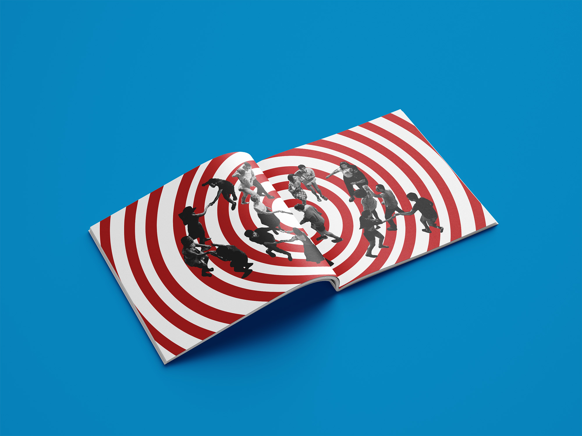This monothematic publication is based on Kate Elswit’s short essay about the effects of the pandemic on the public. The use of spiraling circles and the hard red against white is intended to create a distortion when looked at, making the viewer feel a little uneasy to convey Elswit’s words in a more powerful way.