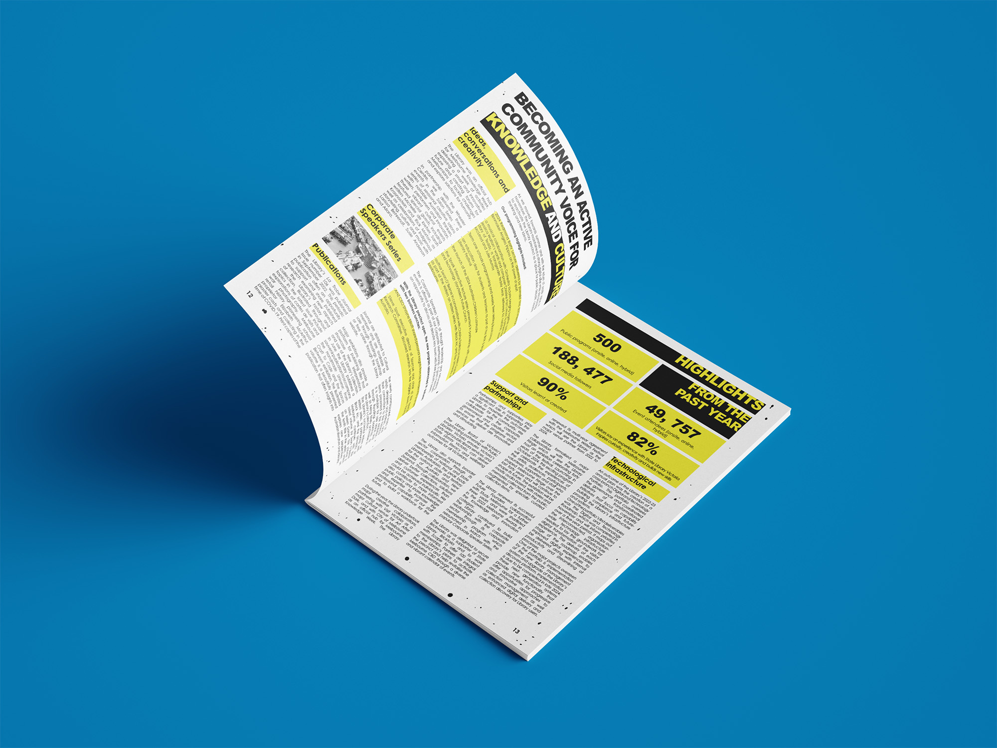 Showing the Library in a grungier way to represent the youth culture that exists around it. The black and yellow colours give the report a bolder outcome to truly follow the concept. With the assistance of specks that float around each page, it helps to capture the theme of the booklet.