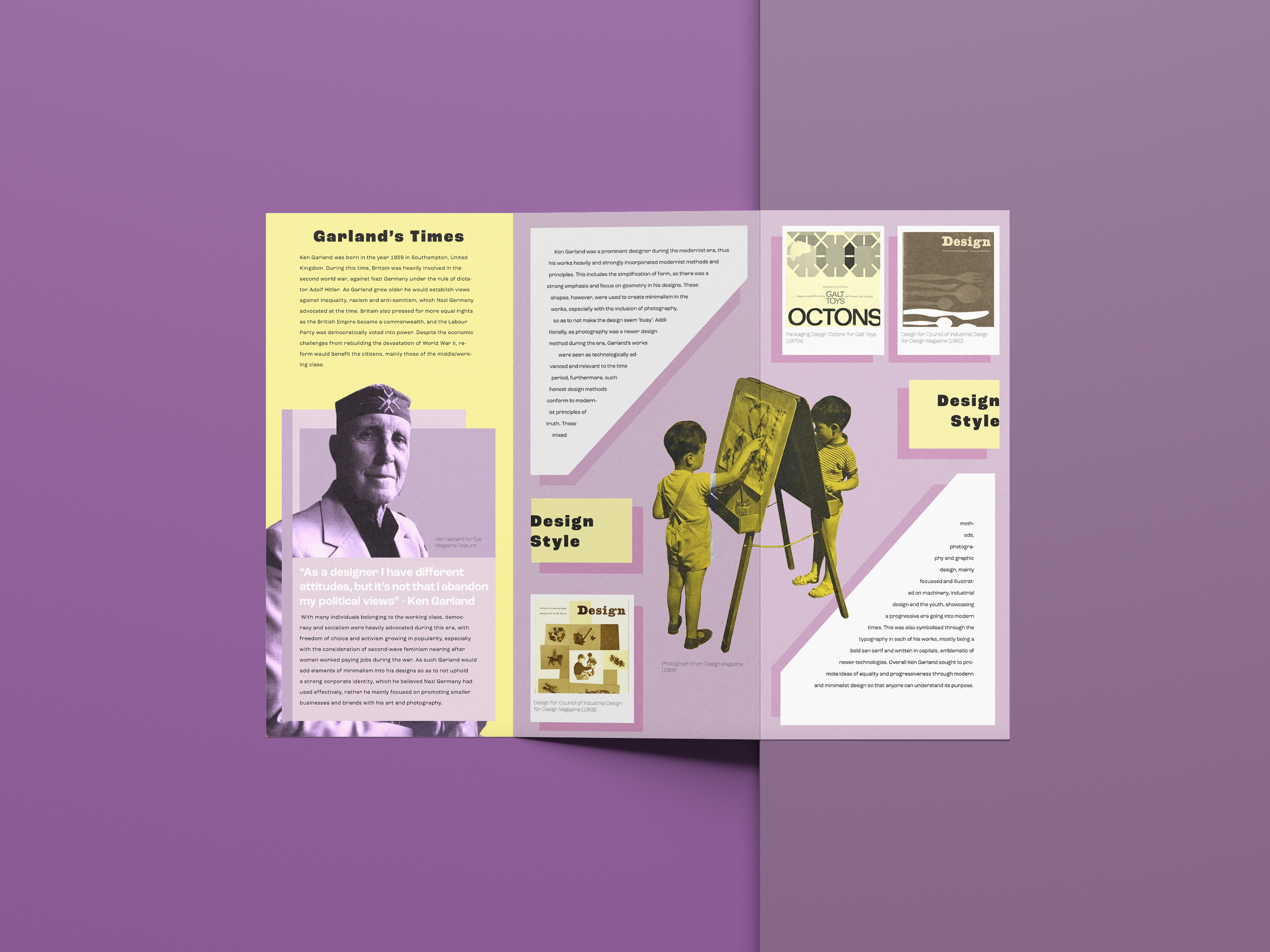 This project involved designing an abstract, bi-coloured infographic that visually interprets Ken Garland's works. Thus a visually striking and educational piece was created that communicates key insights about Garland’s contributions to design in a clear, engaging, and contemporary way. Hybridising photography with vector image, paid homage to his design process which involved utilising collage, photography and mixing other methods.
