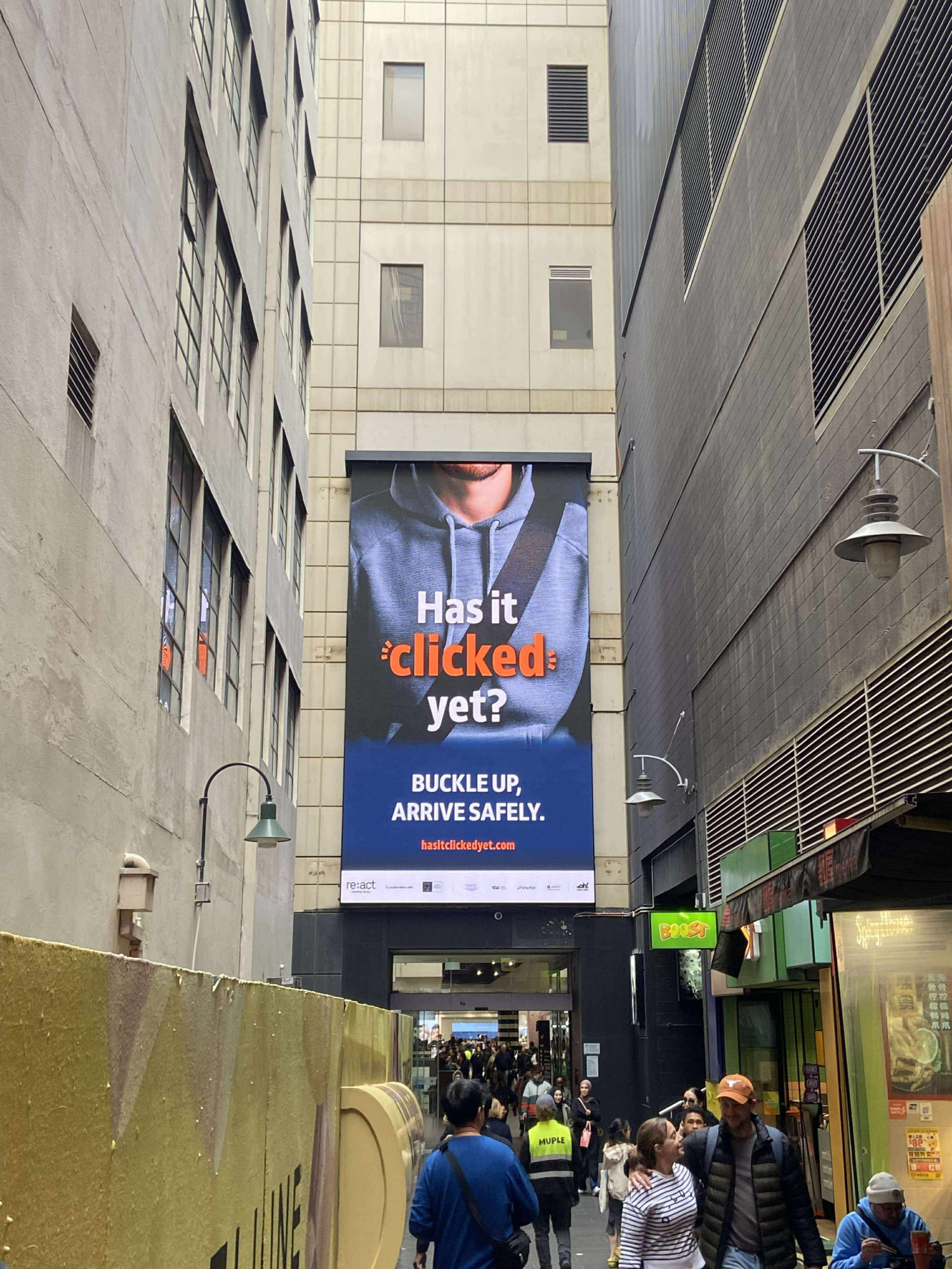 The 'Has it Clicked Yet?' Campaign was a collaborative project, chosen by Re:act to be publicly put out across Victoria, advocating for seatbelt safety. I assisted in the ideation and refinement process, as well as leading the website design on Squarespace.