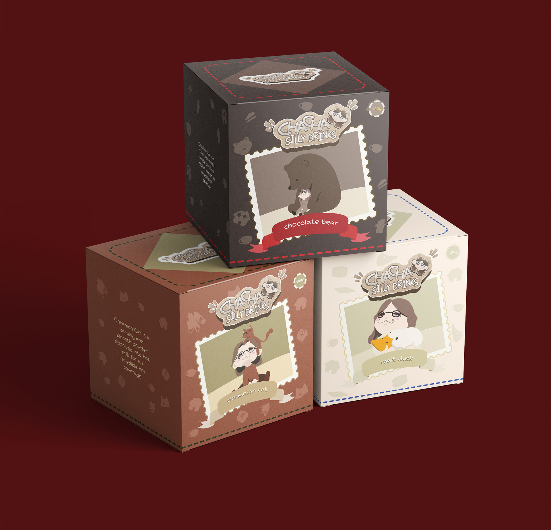 The motivation behind this fictional powdered drinks packaging was to create branding for lovers of cozy vibes, warm drinks, and autumn’s beauty. To capture these elements within a small box, I used cute characters and comforting aesthetics to communicate the charm and simplicity of sweet, beautiful drinks.