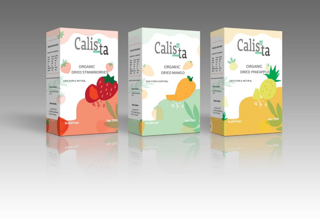 The Calista packaging design project aims to communicate freshness, health, and simplicity through a clean, modern visual identity. The design features vibrant fruit illustrations and soft pastel tones that highlight the product’s natural ingredients. A balanced layout and clear typography help build trust and appeal to a contemporary, health-conscious audience.
