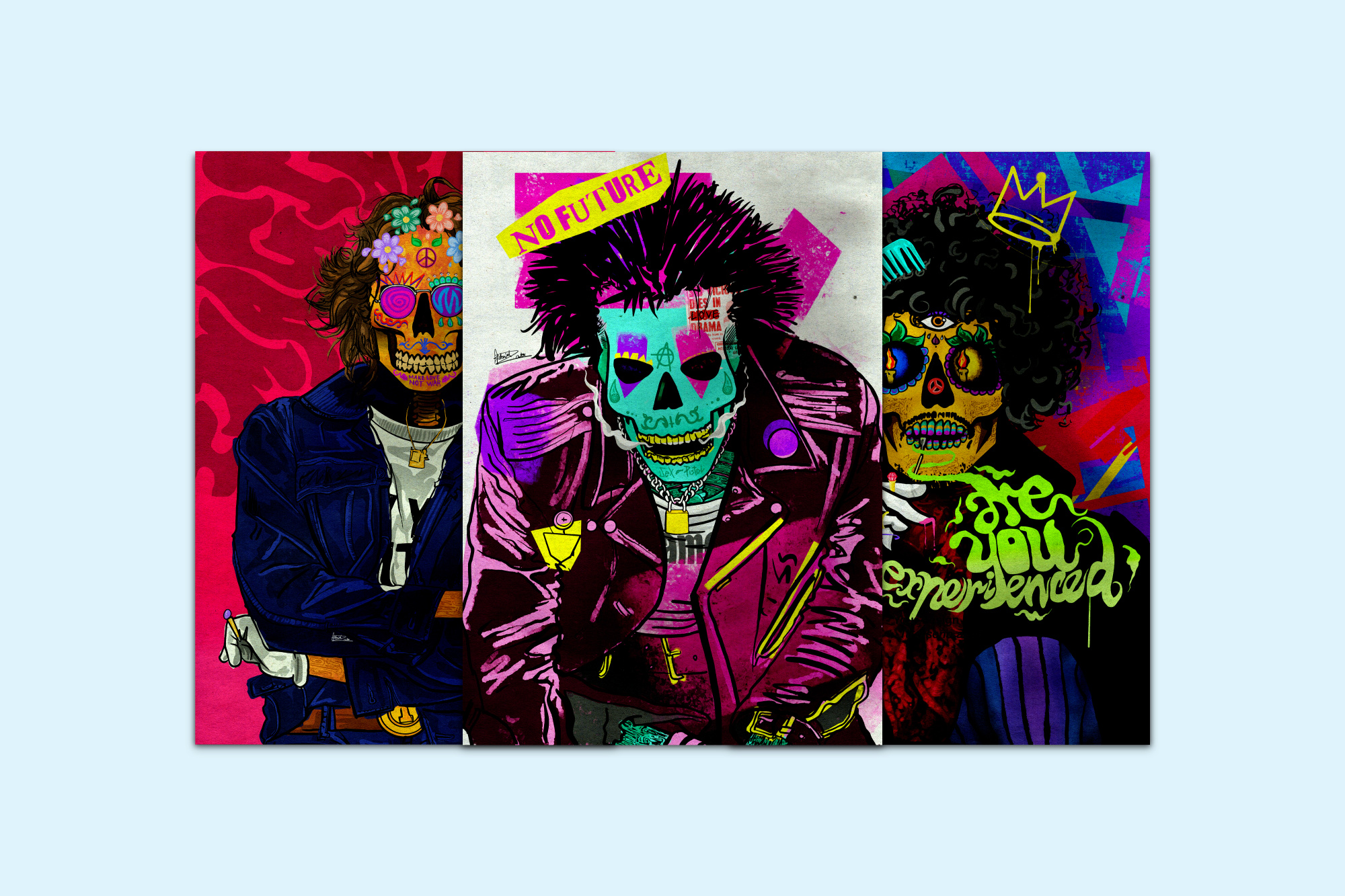 During my first year at university, I had a hard time finding my personal voice and passion in design and didn’t really know where I wanted to go with it professionally. I decided to take a gap year in Cadiz, Spain, working as a primary school Art, English, and Music teacher and showing my work in a small gallery. I came back to university ready to dive in with more confidence, having learnt that what I love is combining art and illustration with creative graphic design.
