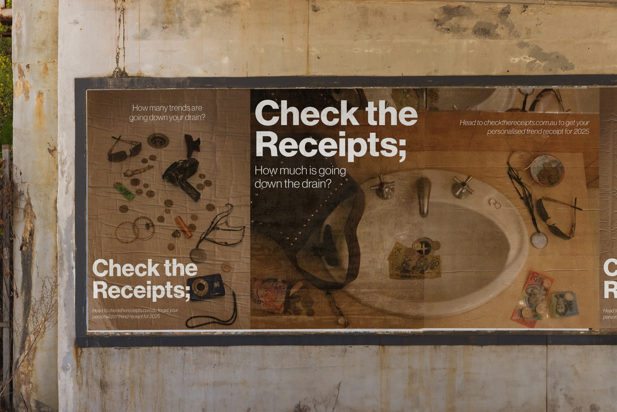 The solution was Check The Receipts, a campaign that partnered with Ad Busters to produce multiple touchpoints on tradition and digital media. The online side of the campaign invited users to complete a short quiz to receive their 2025 Trend Consumption Recap, which users where then encouraged to share their results to social media. The campaign stretched across new years, aiming to have users make resolutions to be better about their consumption habits.