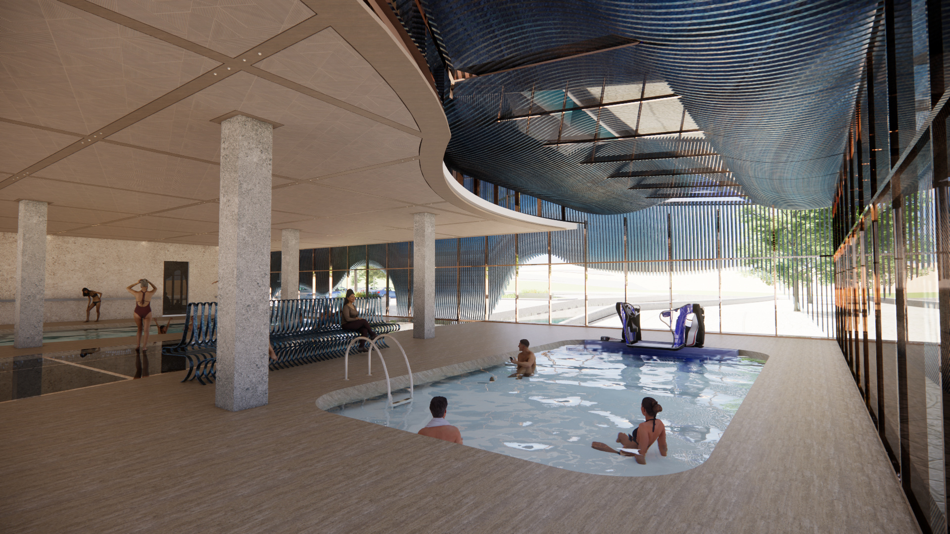 Pool area providing those needing physical rehabilitation with aquatic therapy and a range of different therapeutic activities