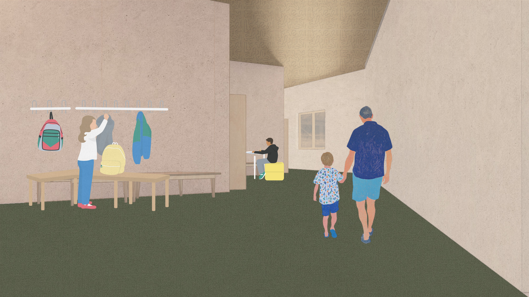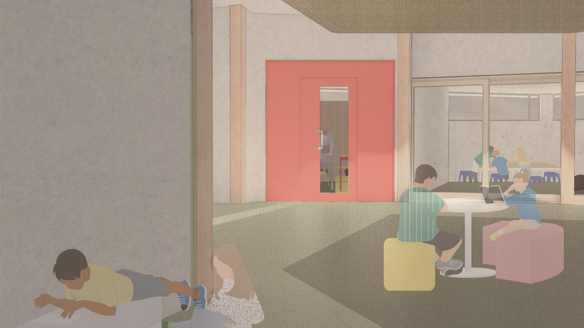 Drawing language from existing site conditions, Interplay imagines an internal streetscape for school buildings to congregate around, forming interesting side "pockets" for spontaneous learning to occur.