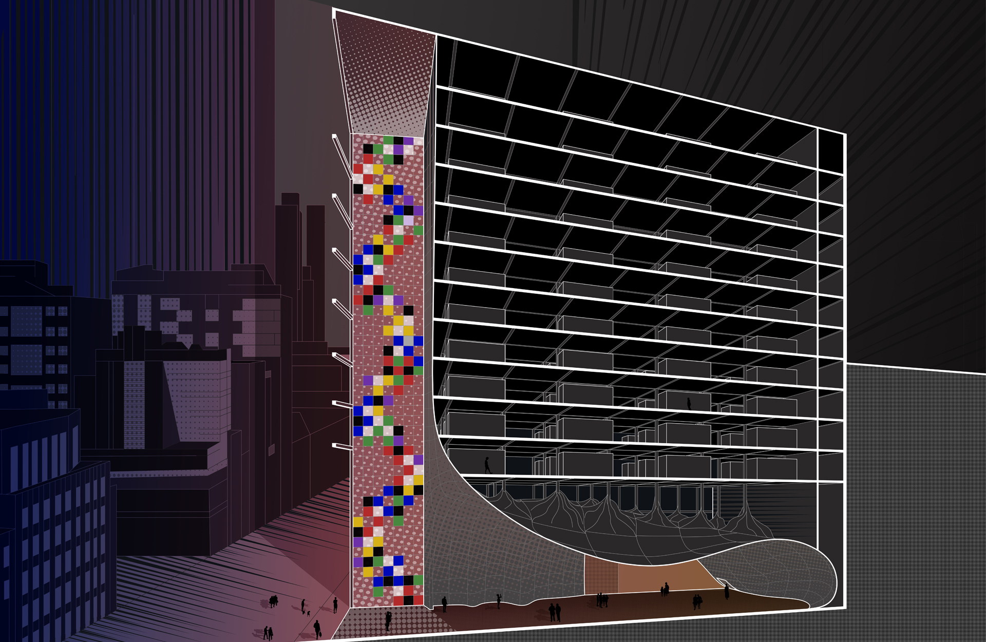 One of my favourite projects, Reality Checkpoint, investigated the role of data Centre architecture within contemporary society. Often perceived as remote and dystopian, Data Centres are essential to global communication and digital culture yet remain largely unseen. The project questioned how these infrastructures could balance concealment, environmental sustainability, and ethical transparency, proposing an architecture that acknowledges digital systems as integral to civic life.