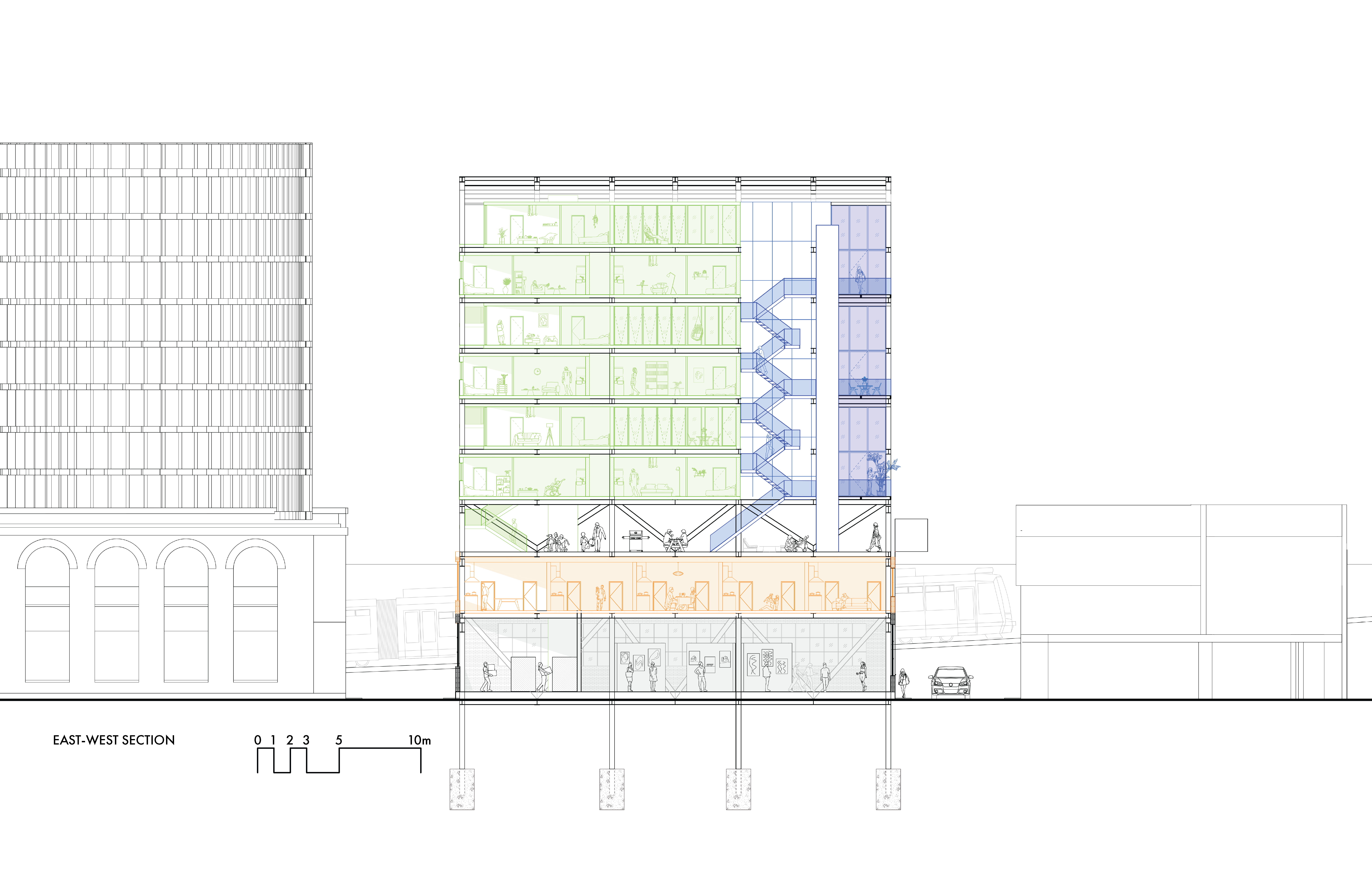 Vertical Village (Housing studio) East West Section