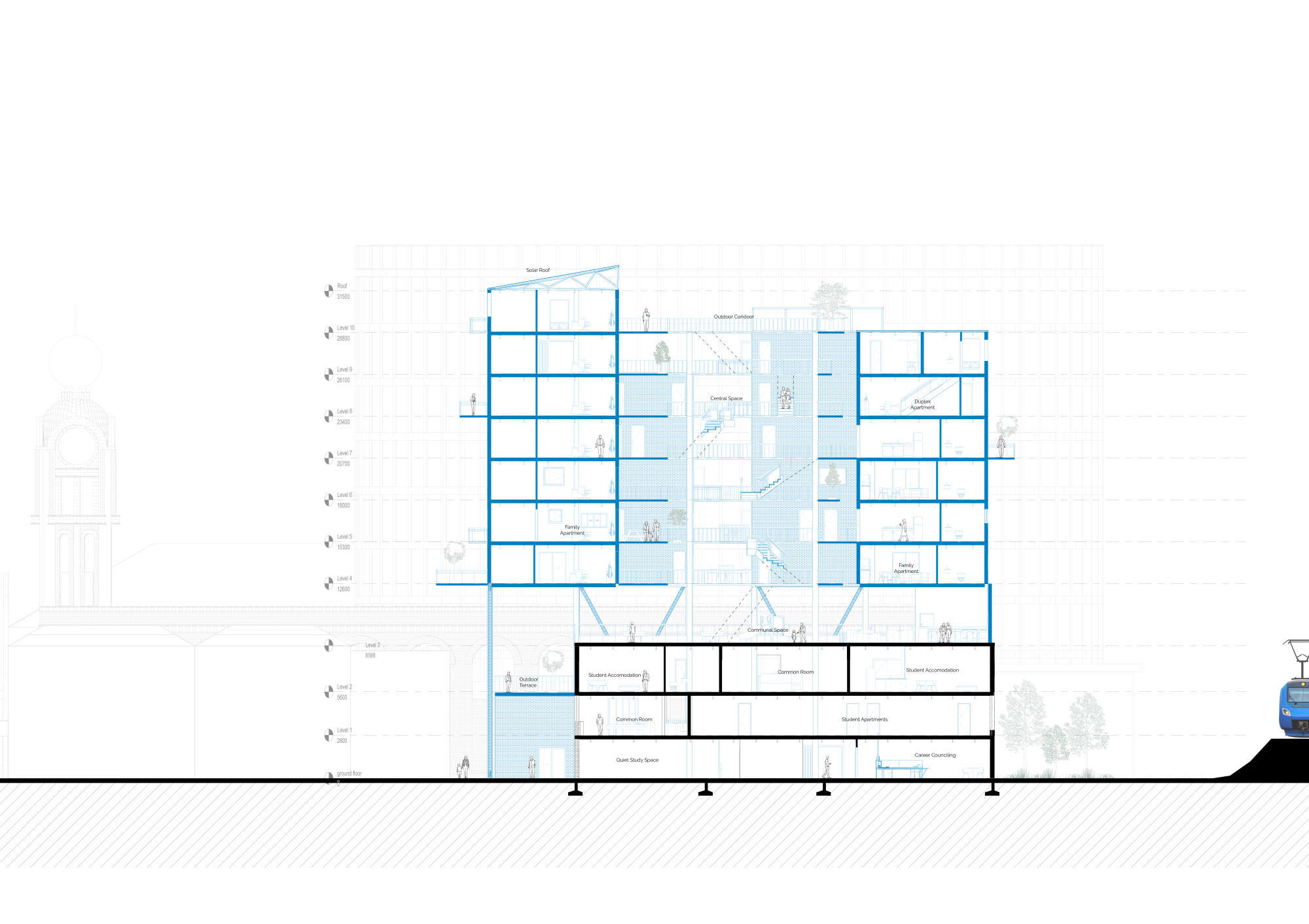 The site offers a diverse range of family-oriented apartments, ensuring all household types and living scenarios are supported, while the existing warehouse is adapted to provide high-quality student accommodation.