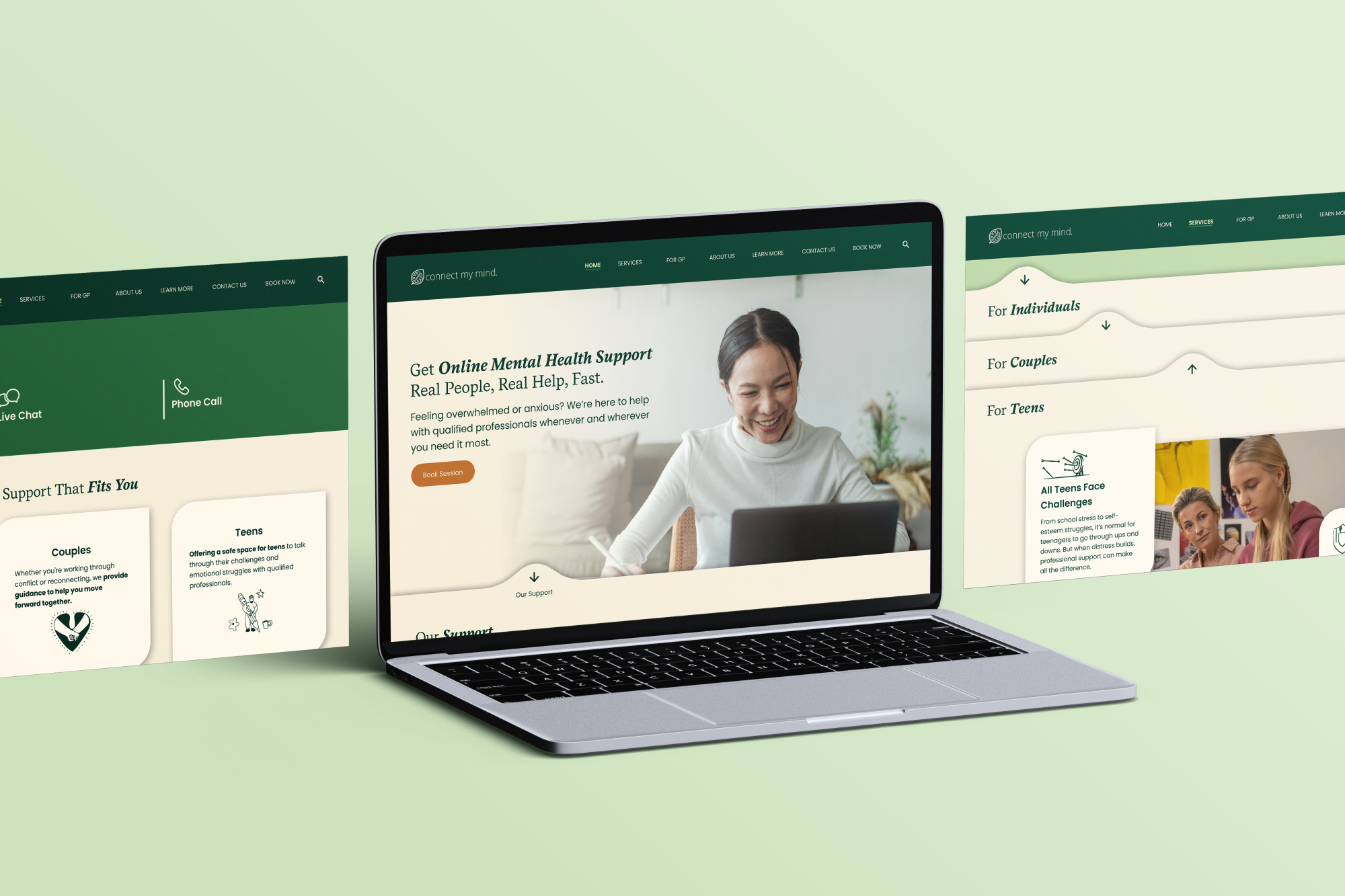 This project focuses on improving the digital presence of Connect My Mind, an Australian-based online mental health counselling service. The redesign focused on improving clarity, accessibility, and emotional engagement to better engage individual clients and GP clinics.