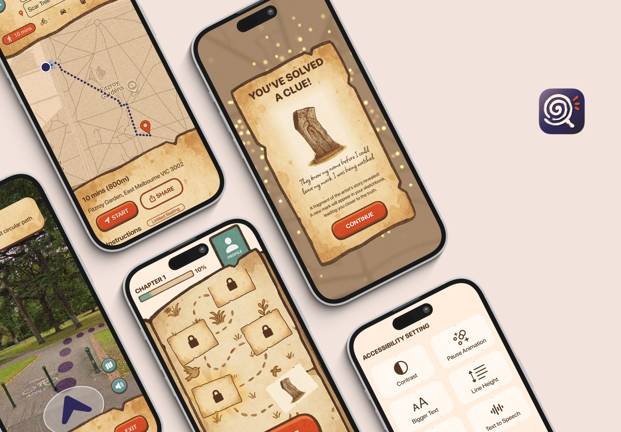 A location-based narrative game through geolocation and interactive drawing. Players embark on a journey to uncover the mystery of a missing artist whose sketchbook has been scattered across the city. Using real-world landmarks as story anchors, players navigate through their surroundings with GPS guidance. At each location, players are invited to recreate sketches inspired by their environment, merging digital prompts with physical observation.