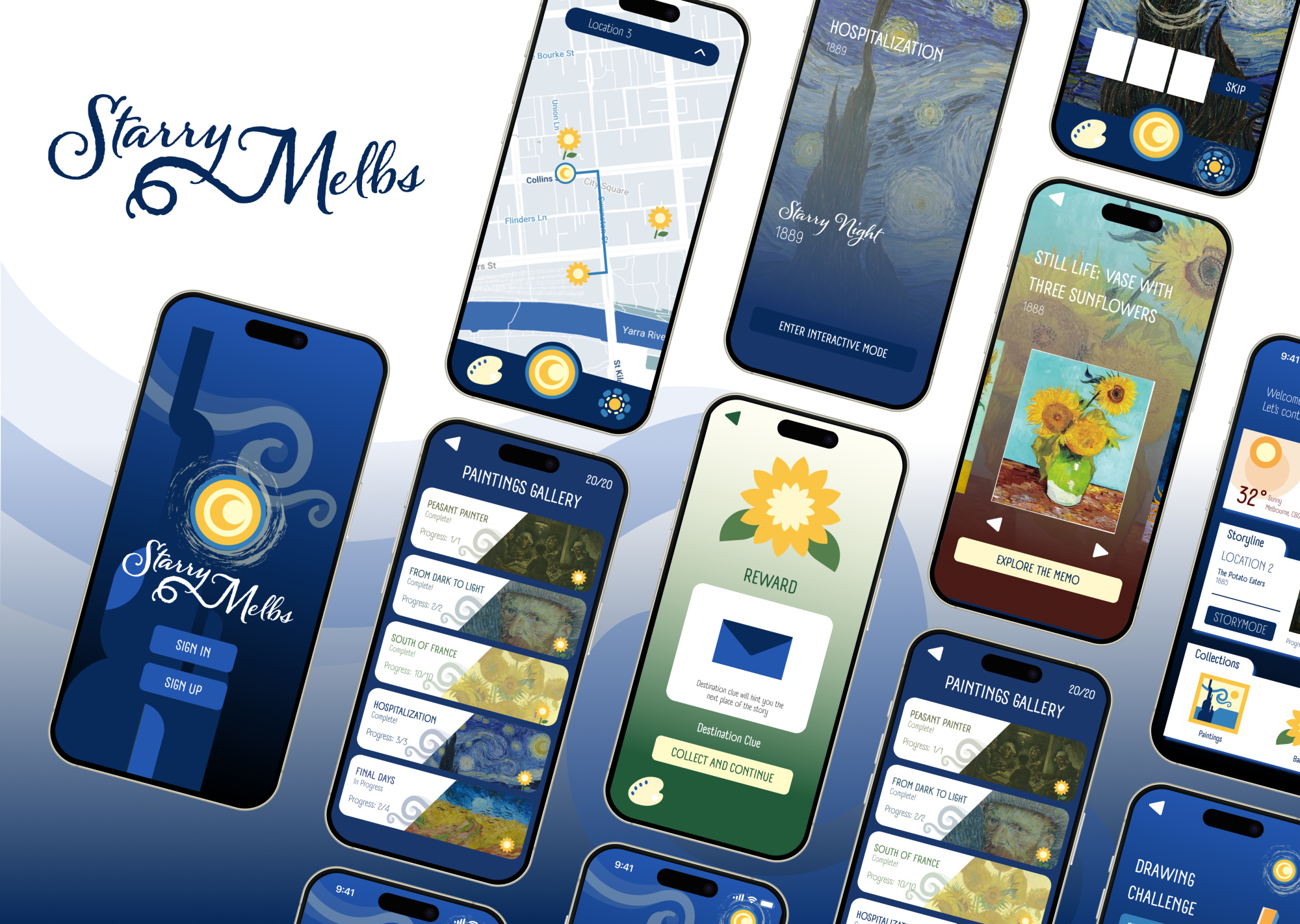 Starry Melbs is a poetic, location-based mobile game that transforms Melbourne into a living canvas inspired by Van Gogh’s life.